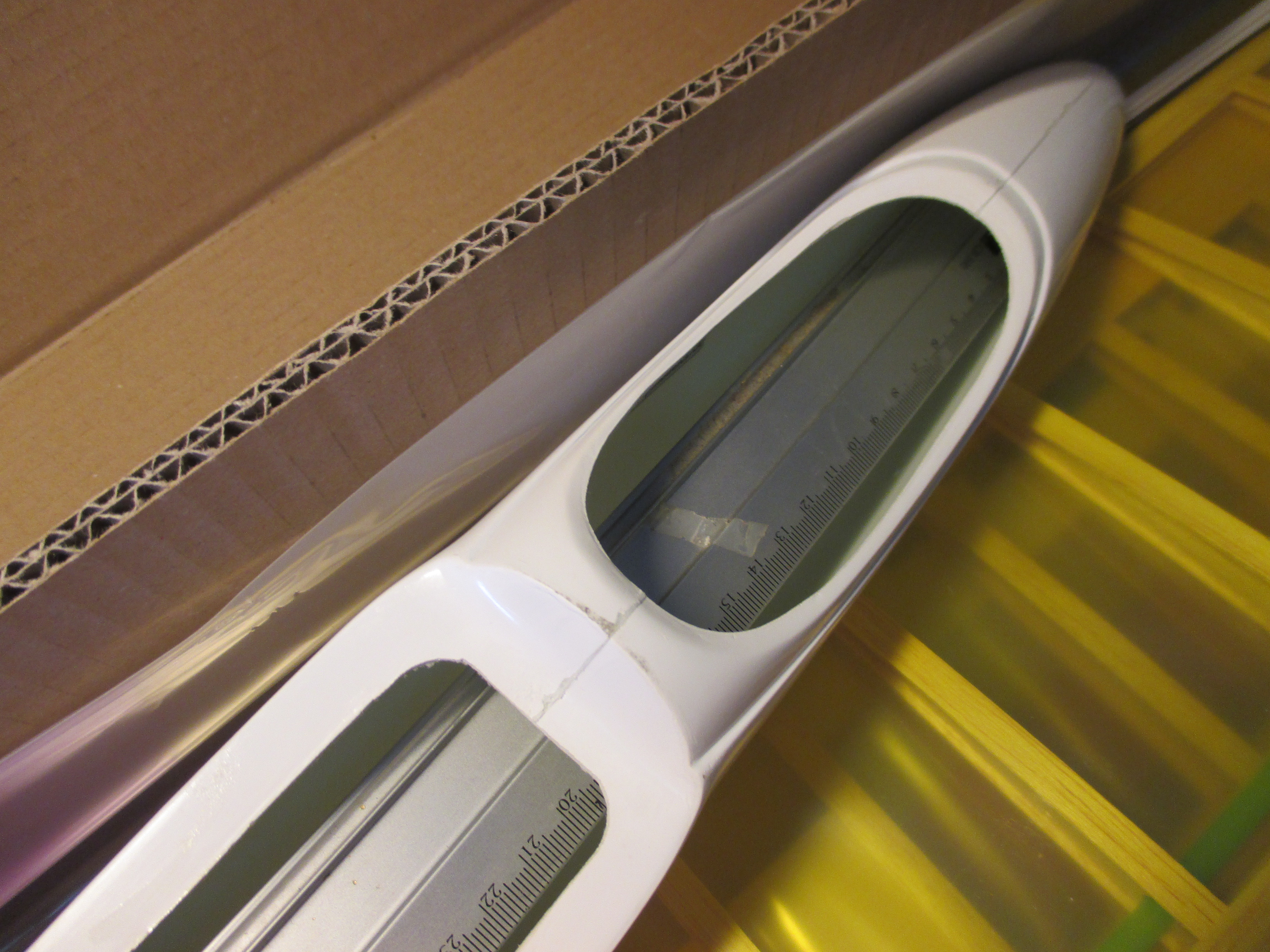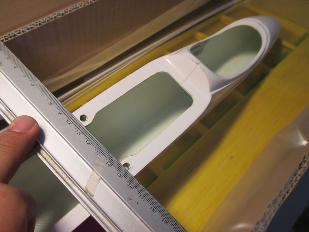 El fuselaje se ve GRANDE pero el peso realmente llama la atencion, una de las cosas que ha hecho TopModel es la utilizacion de mejores resinas y varias capas de tela de bajo peso aplicando cada capa con rotacion de 45 grados lo que hace al fuselaje mas liviano y resistente. Hasta no hace mucho los fabricantes en compuestos moldeaban ese tipo de fuselajes con una sola capa de tela gruesa y algun refuerzo adicional lo que resultaba en piezas mas pesadas. Si uno compara el espesor de las capas de un fuselaje de TopModel y uno de mediados de los 90's con las mismas medidas con seguridad son la mitad de gruesas pero la resistencia es igual o mayor ....... un fuselaje promedio parecido al Murena pesaba cerca de 240grs.