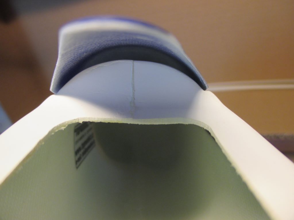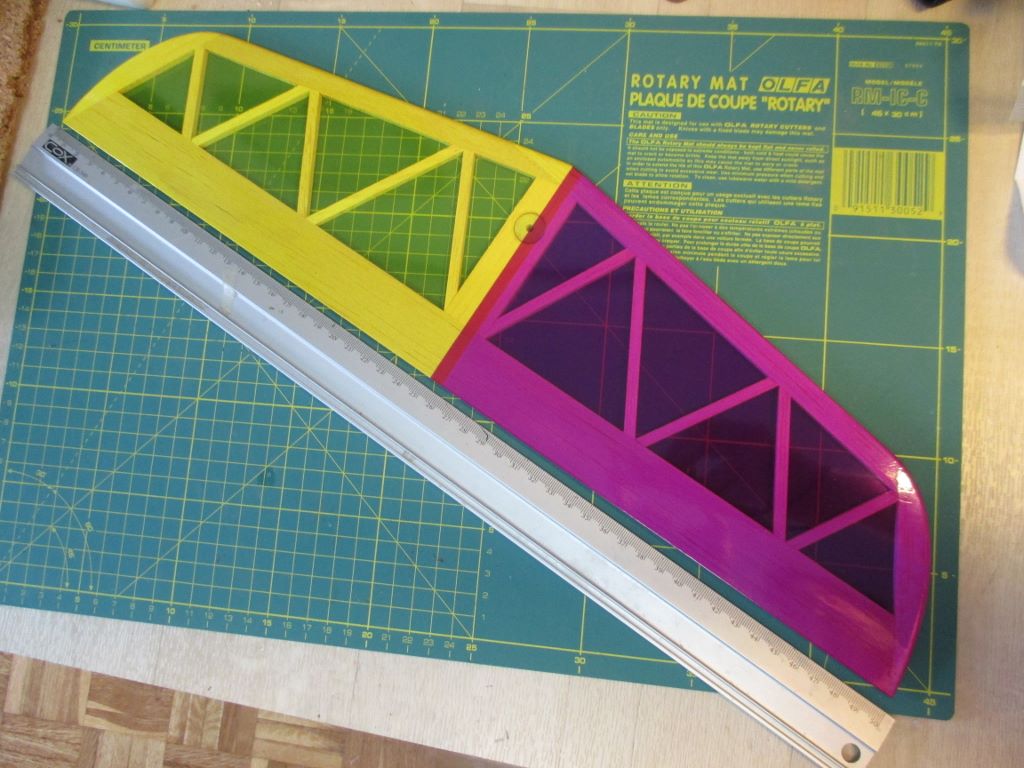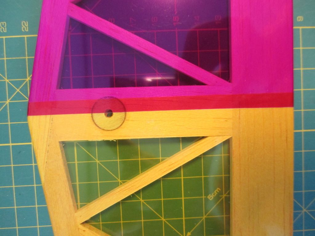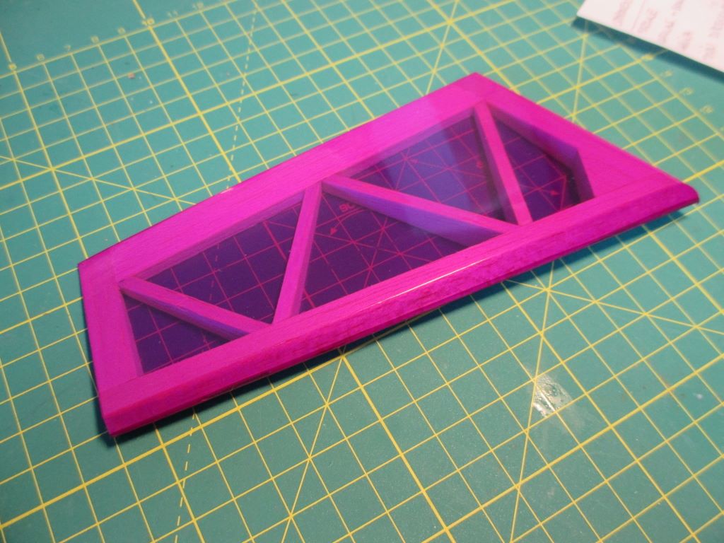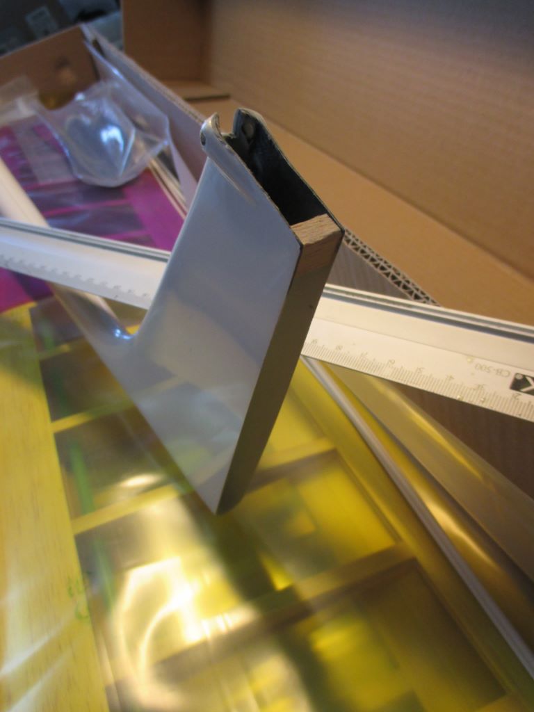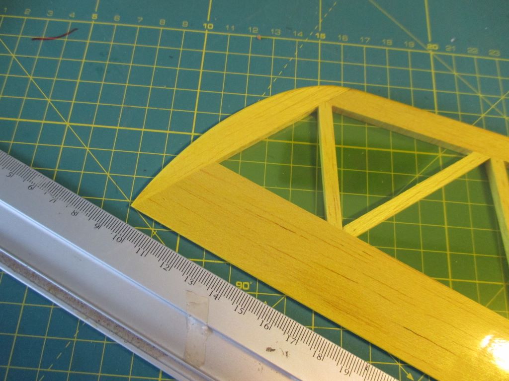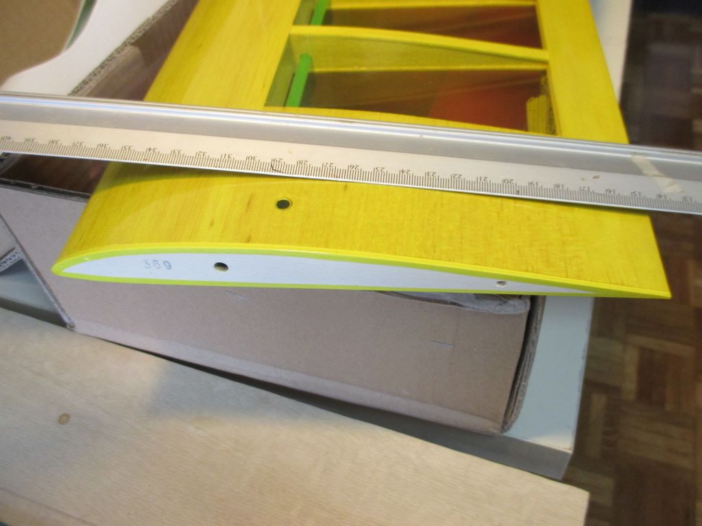 El marginal es plano en la parte inferior; en la zona del borde de salida tiene una pieza con la veta orientada en dirección de la envergadura. Con esta configuración no sé si me convendrá añadir un patín en la zona, algo de cinta, o será suficiente. Cuento con que a estas alturas seré capaz de aterrizar razonablemente bien, salvo catástrofe...