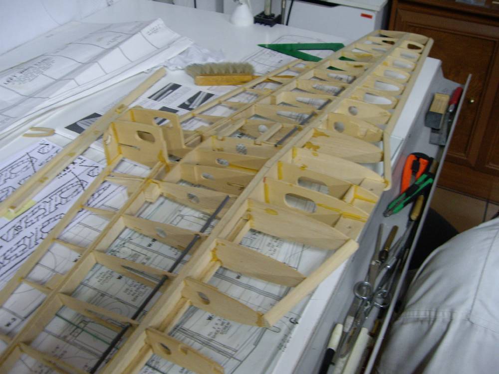 Como podéis ver está prácticamente acabado, a falta de algo del chapado lateral (a priori la zona más fácil), pintura del morro y algunas calcas, también reparé una bancada/soporte de trabajo y desplazamiento, diseñada para que ocupe el menor espacio posible en el transporte. El hecho de no estar ya en el mundillo de forma asidua y desde hace muchos años la afición al modelismo naval estático que ocupa ahora gran parte de mi tiempo hacen que el proyecto no avance como debiera. Lo cierto es que ya debería estar volando, pero si algún día llega seguro no será conmigo, aunque espero no perderme ese día.