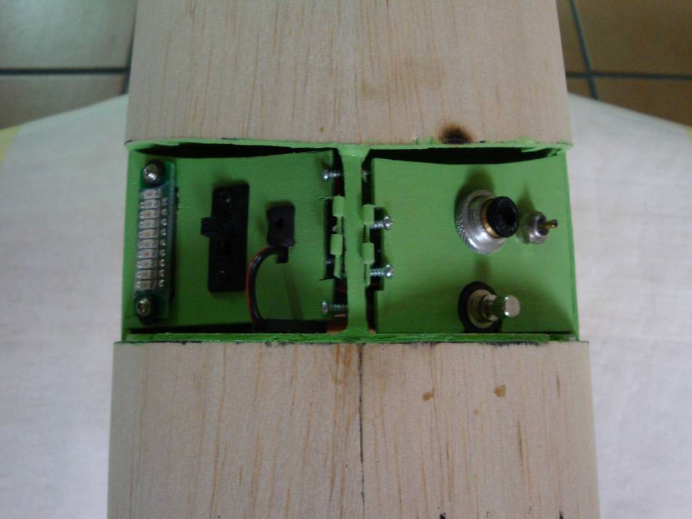 El modelo va equipado con un receptor Futaba de 7 canales y 8 servos; 1 Futaba ref.3010 de 6kg para alerones, 1 Hitec HS81 mini para el tren neumático delantero y portalones, y 6 Futaba ref.3001 de 3kg que se reparten: 2 en flaps, 1 deriva, 1 profundidad, 1 tren trasero y 1 gas. Como podéis ver, nada en especial, aunque algún amigo me recomienda algo más contundente en profundidad y alerones.