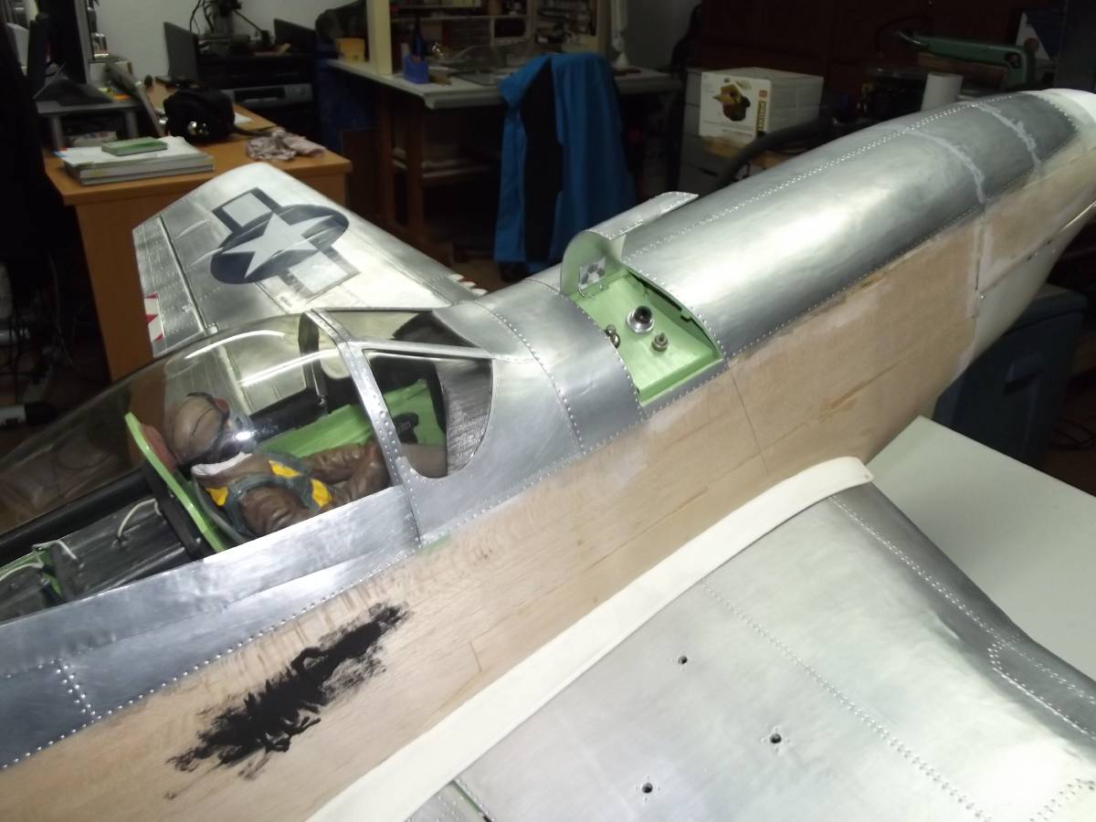 Una vez todo bien lijado procedo al chapado, trabajo que presuponía iba a ser largo y tedioso, pero sorprendentemente, no se si porque el modelo empieza a parecerse a un avión real o porque quizas sea la parte más bonita de todo el proyecto, las planchas se van pegando solas como si de un puzzle se tratara. Lo de solas lo digo de coña, porque cada una de ellas está dibujada en el avión, tengo que sacar un patrón de la pieza que deseo, la recorto en chapa a la décima de milímetro y la termino encajando en su sitio pegándola con una fina capa de cola de contacto. ¿Creíais que ya he terminado?, pues nada de eso, les marco las costuras de los puntos de soldadura con la punta de un bolígrafo y luego les paso un scoth brite para matizar su brillo de manera que queda lo más real que podáis imaginar.
