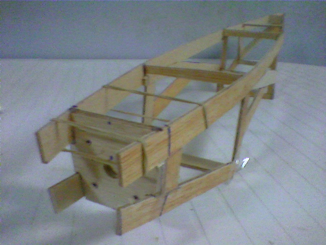 El fuselaje inicial lo estoy repitiendo ya que el esquelto original no me convencia porque esra parchedao sobre el depron y ahora lo hago al reves, primero el esqueleto y despues ya lo entelare con derpon 3 para que me quede mas redondito y poder pintarlo como el original.
