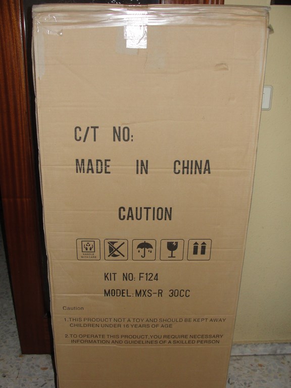 Empecemos por el embalaje!!! Una caja de considerables dimensiones, como quien dice es casi ya un 2m (mas adelante lo vereis en las fotos, pero el timon es casi tan grande como el de un 50cc).