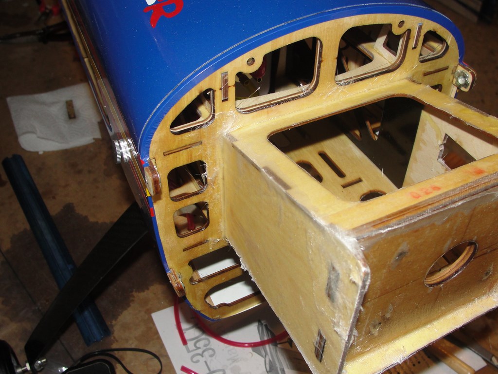 Yo voy a enfibrarla con fibra de 25g y epoxy diluido en alcohol, pero no hace falta hacerlo!! toda la zona viene con una mano de epoxy diluido y muy reforzada, el que se haga esto en otros modelos es porque, además de dar cierta resistencia estructural al morro, la fibra protege a la madera de la gasolina, y algunos modelos comerciales vienen con la madera al "aire", y es importante este paso, la gasolina se come la madera con el tiempo, asi le damos mas vida al morro de nuestro avion (si sobrevive :) ).