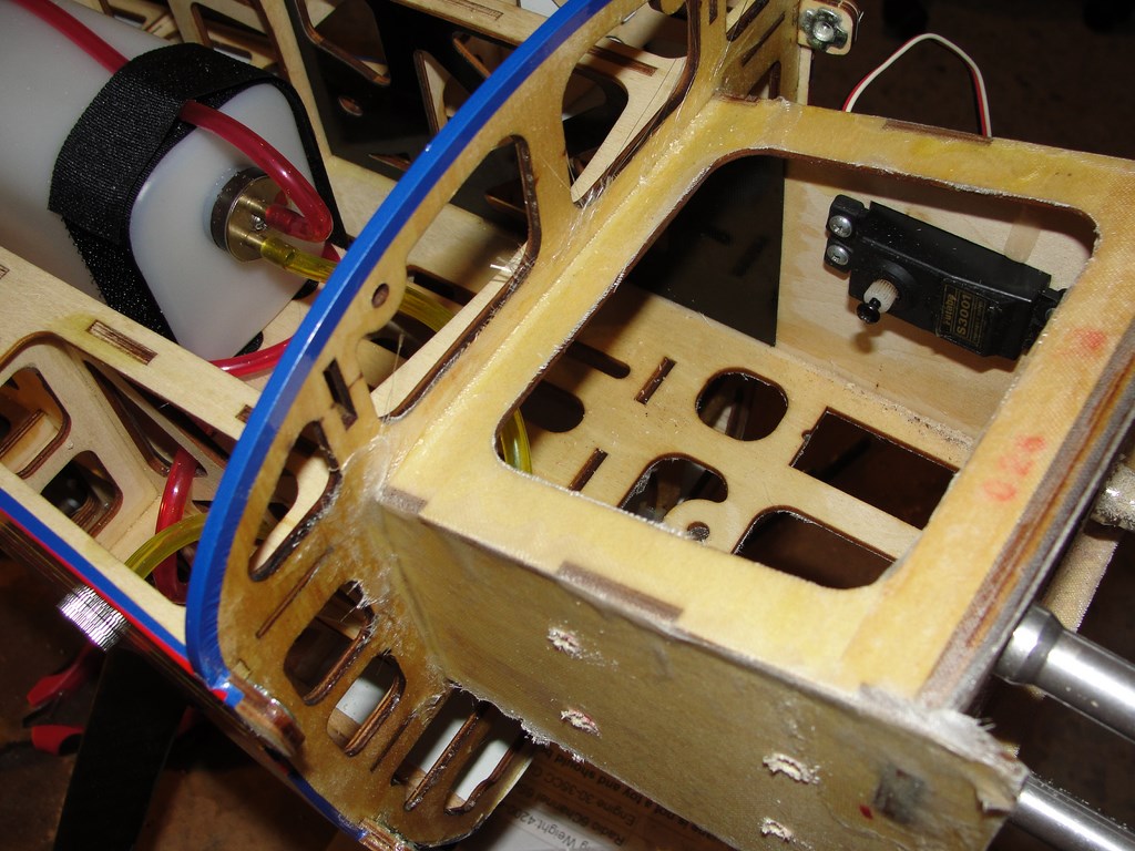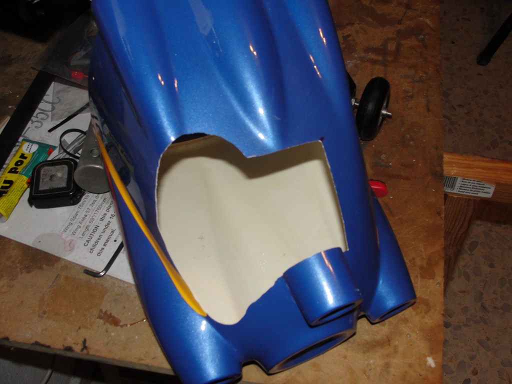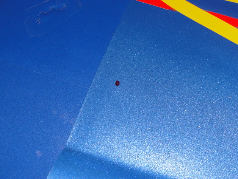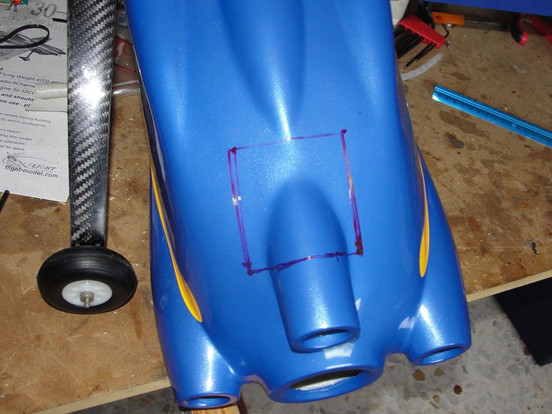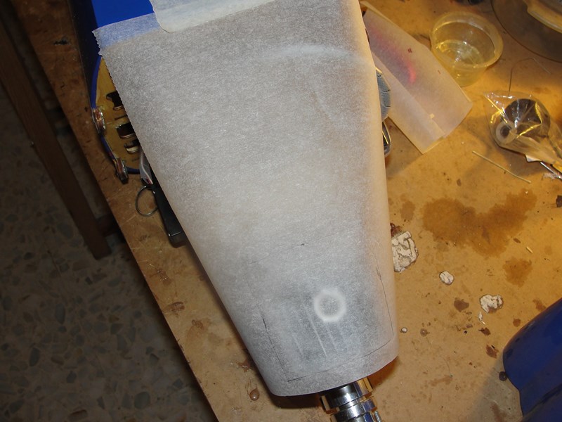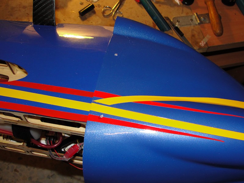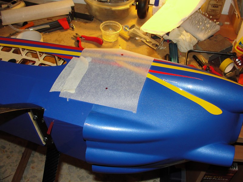 Además aprovecho un huequecito en un lateral del fuselaje que le hemos dado forma circular con una lija, la misma que me ha destrozado mi precioso oracover