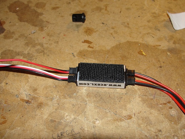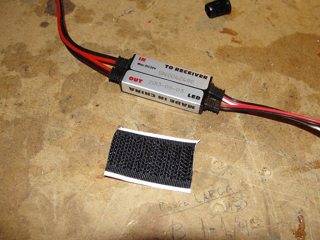 Ahora vamos a dejar preparado el switch rcexl, yo siempre uso velcro, aunque en algunos casos despues sujete con una brida. Uso velcro adhesivo, pero aun asi, suelo poner una gotita de superglue en el centro para asegurarme de que no se va a despegar (ya sabemos que esto de los chinos y las cosas duraderas..).