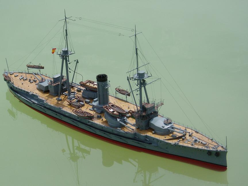 Nada de motorcitos, todo vela. Las velas cuadradas de los 2 mástiles se orientan conjuntamente mediante un un servo estándar. Tiene escasa capacidad de maniobra respecto a la dirección del viento, pero así sucedía en el modelo real.
