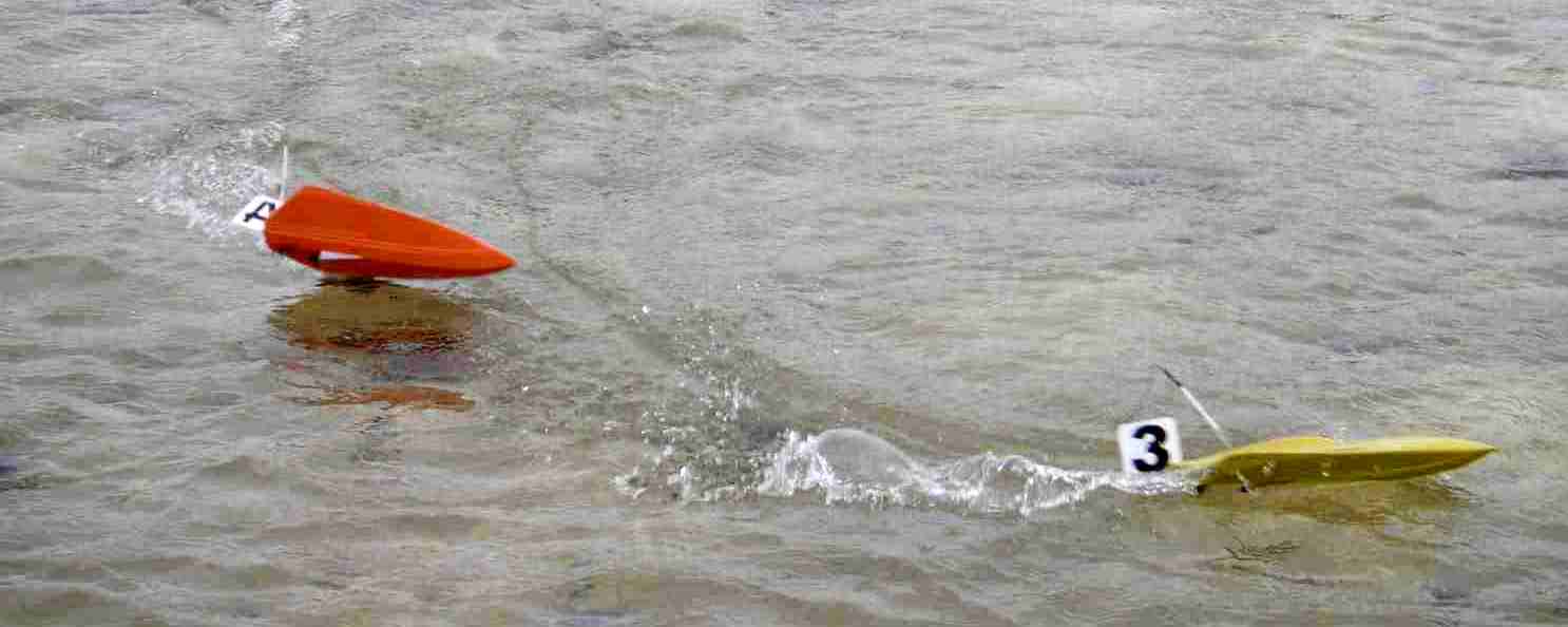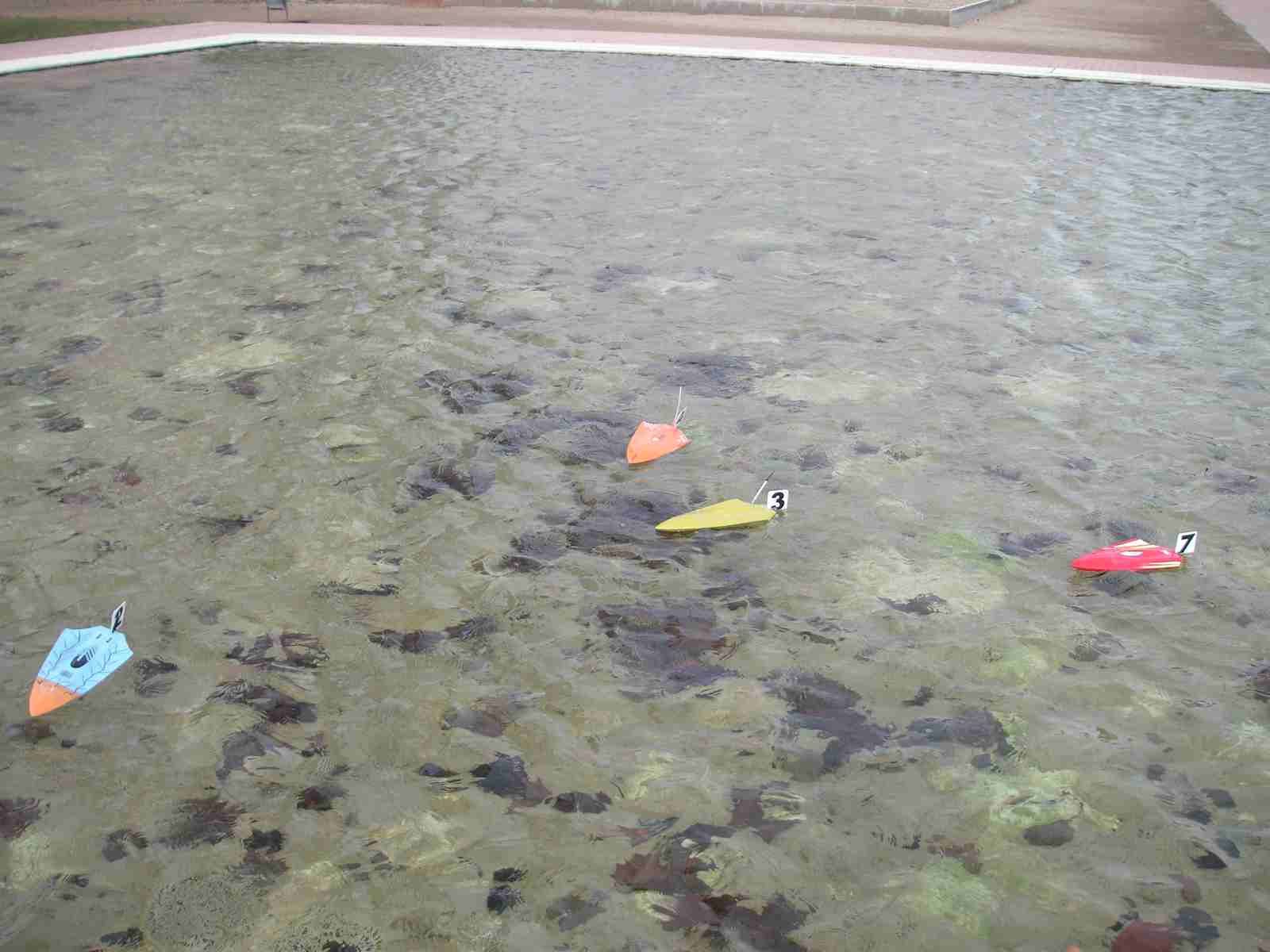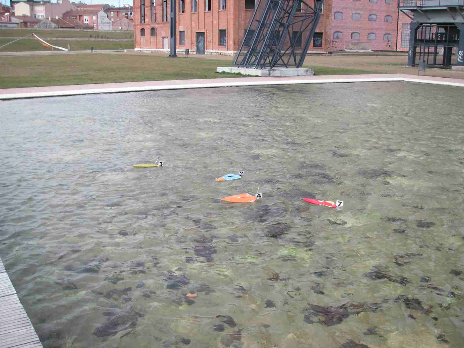 Hoy Domingo, a eso de las 12:30, hemos celebrado la segunda carrera de micro-lanchas en el parque de las norias. Se ha demostrado que con muy pocos medios se puede organizar una carrera de estas características. Cinco pilotos (cuatro aprendices sin contar al Pirata de la Estepa) y tres jueces. Fueron cinco lanchas en carrera a dos mangas de cinco minutos, con la misma bateria. Mangas muy reñidas y no exentas de complicaciones, el amigo Pirata perdió la antena de receptor, el amigo Jesús rompió piñones del servo dirección, Jose ha volcado, yo también he volcado, me han pasado por encima y creo que también he pasado por encima de alguien. Eso era la guerra, y es que íbamos como las balas.