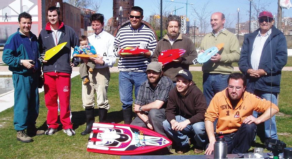 Y no podía faltar foto del grupo de pilotos y mecánicos: observad al pequeño bribón de Yeixpiei, que ya quiere echarle el guante a la lancha.