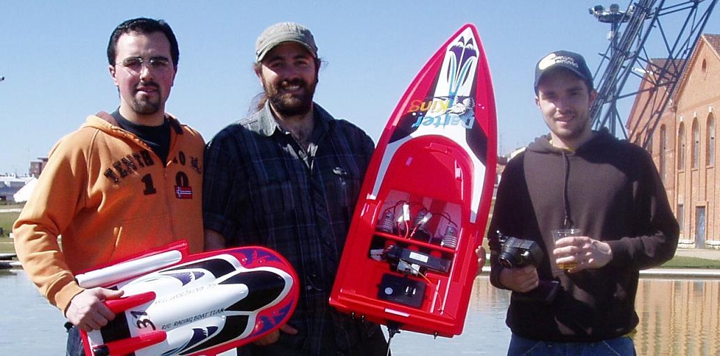 Juan Carlos Urdiales y sus colegas, era día de estreno de su mega-lancha: 3 motores 600 con reductora y 16 elementos NiMh de 3300mAh.
