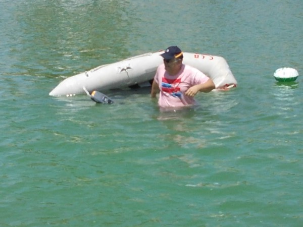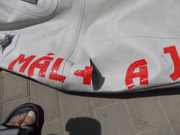 , pero nada, que no hay manera. El reventón se produjo por ir yo sentado justo donde impactó, de forma que el plástico estaba comprimido y claro, fue instantáneo. Lo malo es que la carrera había terminado hacía un minuto y algo, con lo que los barcos llevaban al menos 6 minutos y pico navegando. Pero bueno.