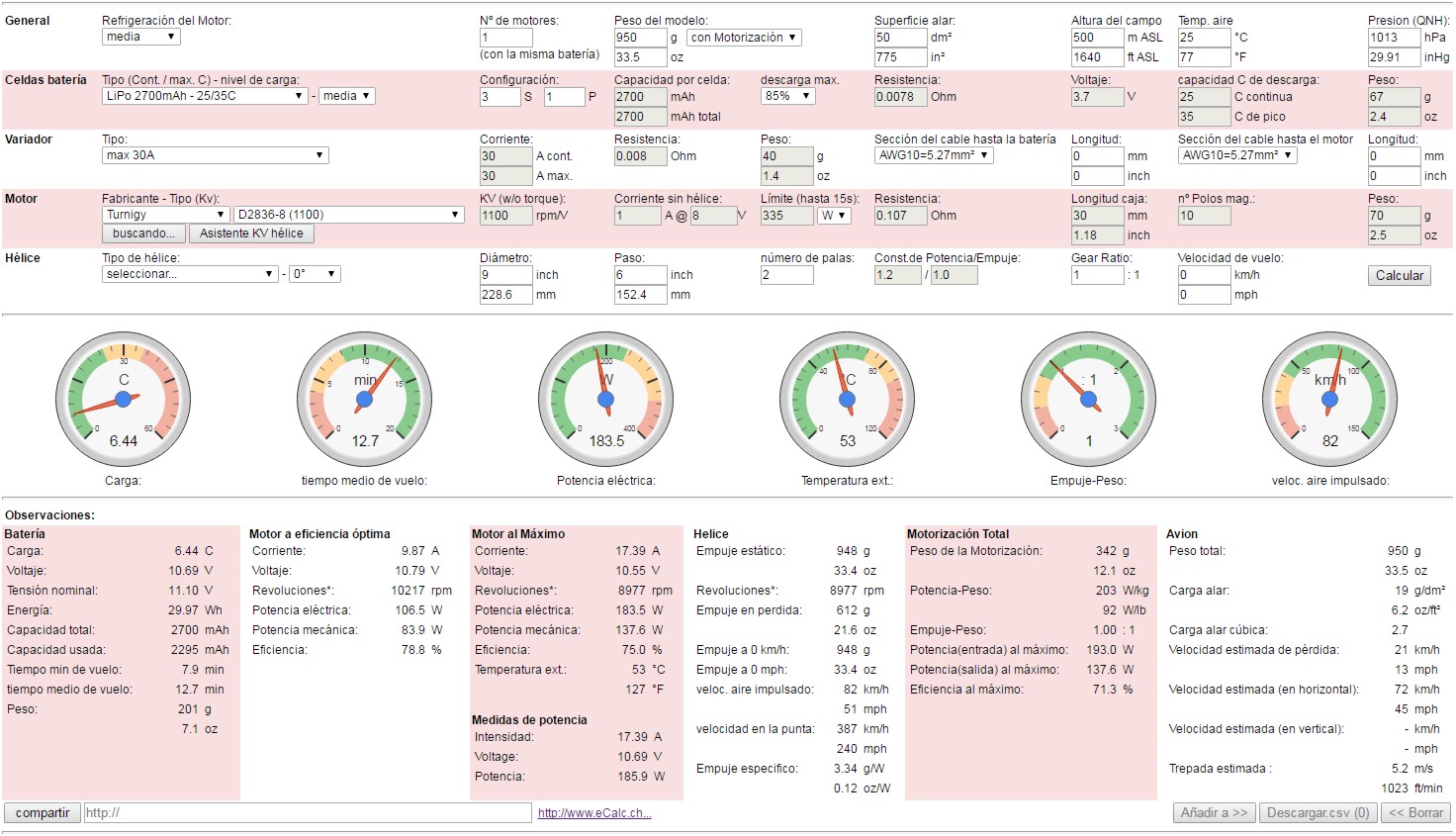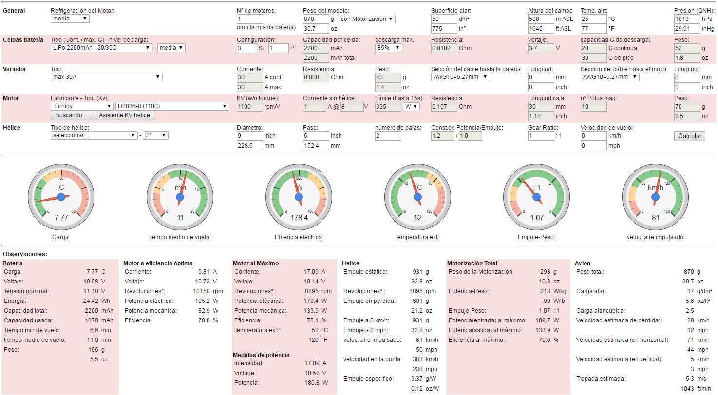 Quisiera saber si podria hacer volar un avion de 870gr (ya con todo instalado,Motor, Bateria, Speed Control, servos) usando un motor brushless Turnigy 2836/8 con una helice 8x3 o una 10x6 ....es que no se bien como sacar estos calculos de empuje-peso y velocidad que podria alcanzar con este motor para volar.....gracias por adelantado