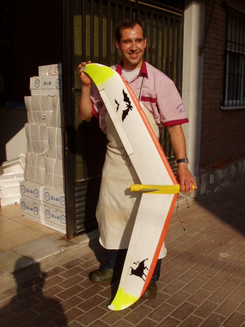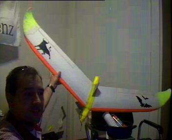 pues que tenia unas alas de un easi glider inservibles en casa y me he puesto a inventar y esto es lo que me ha salido . Necesito saber ; ¿le corto las orejuelas ??? le pongo el estabilizador mas grande ?? le hago los alerones mas grandes ?? donde le busco el centro ??? . la verdad que no se si volara..