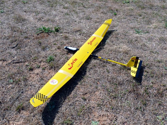 Velero térmico eléctrico 230cm. y 1kg. de peso, diseño propio, fuselaje de carbono y alas en foam forradas en fibra ligera, perfil Selig S3021 al 9,4%, donde van instalados los servos de alerones apenas tiene 15 mm. de espesor, 6 servos de éstos.
