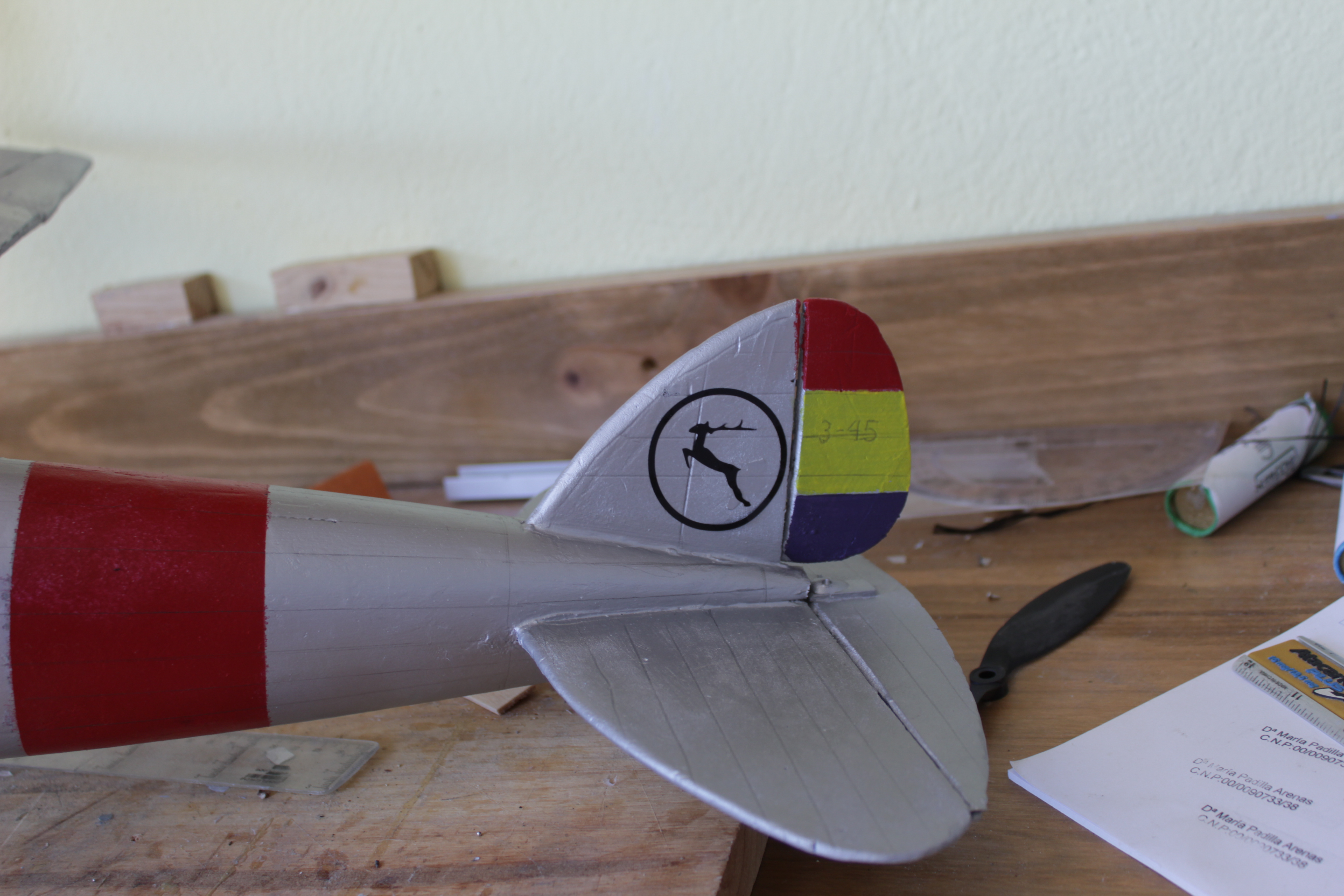 .El momento de cola es muy pequeño por lo que es muy inestable lo típico en estos aviones chiquititos y maquetas... vuelan regular en el mejor de los casos.El ala es provisional sin perfil adecuado, seguramente cortaré una mejor, ya os contaré.