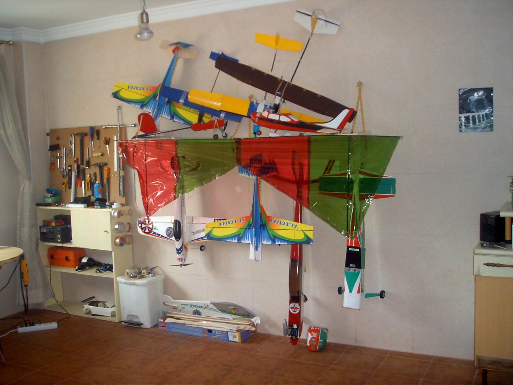 Bueno, pues ahí va mi modesto lugar donde guardo mis humildes aparatos voladores. A veces se me queda corto, así que voy a tener que empezar a vender alguno.....