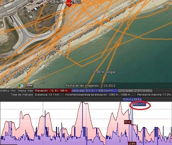 Yo apenas he jugado con el gps, ese valor de velocidad que a mi me registra me parece posible, tengo algún gps mas, intentare comparar un dia de estos.