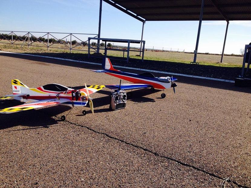 trimado instantáneo.. esto último me ha gustado mucho ha sido darle a la palanca y ya olvidarme.. poco a poco iré conociendo más esta emisora, tambíen aun soy novatillo y me queda mucho por conocer en este mundo.. pues nada ahí os dejo una foto de mi taranis con mis dos únicos aviones .. de momento.