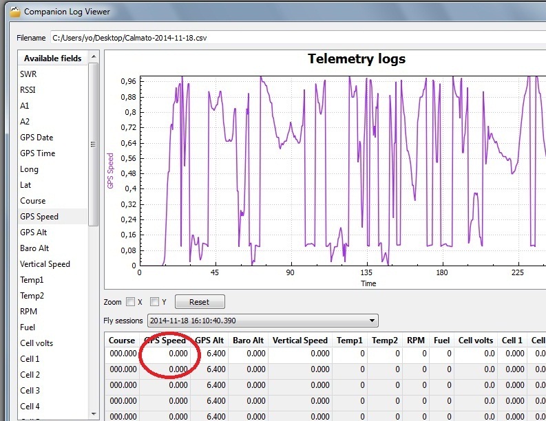 En que firmware tienes tu radio? es la plus o la normal? a mi el gps speed siempre me muestra 0, algo. es decir 0,60 0,66 0,75... no veo cual es el valor cierto. Si bien pensé, que ese valor de 490km/h pudiera ser de un par de pasadas en invertido, que al estar la antena del gps hacia abajo dejara de tener recepción y al volver a enfocarla hacia arriba hubiera calculado desde el punto que dejo de tener recepción hasta al que volvió a tener como único y por eso ese pico.