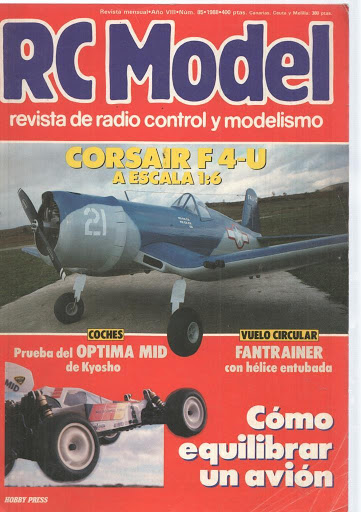 ... ¿Qué entendemos por aeromodelismo de toda la vida? ¿El que se aprendía en una escuela, comenzando por vuelo libre, después vuelo circular y por último radio control, con aeromodelos hechos a partir de plano? Ese casi ya no existe desde hace años desde que se compran los aviones hechos y decorados. Se me confirmo cuando vi a un aeromodelista de la vieja escuela que ganó el concurso de diseño en RC Model con un Corsair con motor de gasolina. Lo vi hace poco volando un corcho de hobby king. Acompaño portada de la revista.