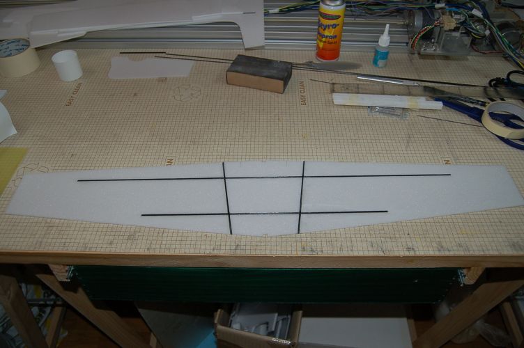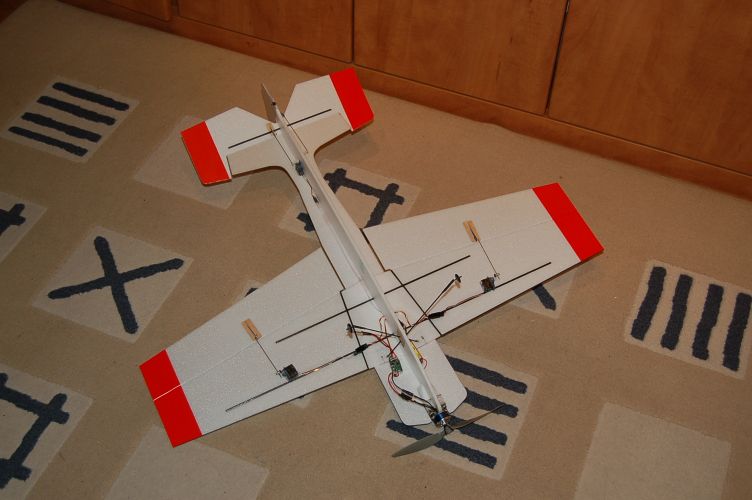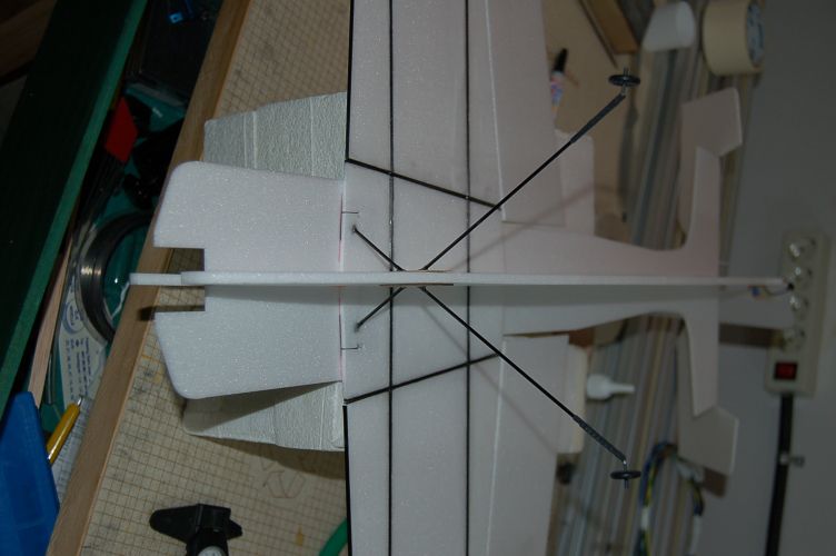 Parte vertical del fuselaje en depron 6mm, el resto del avión en 3mm