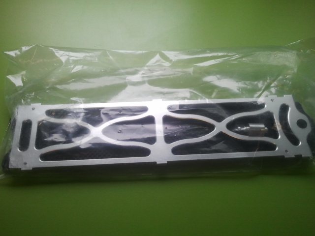 La base tambien en aluminio con la bandeja para las lipos en carbono
