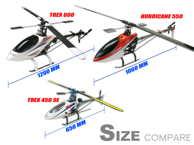 El viper estaria entre un 450 y el 550(mas cerca del 550)(el hurricane tiene un diametro de rotor de unos 90 cms)