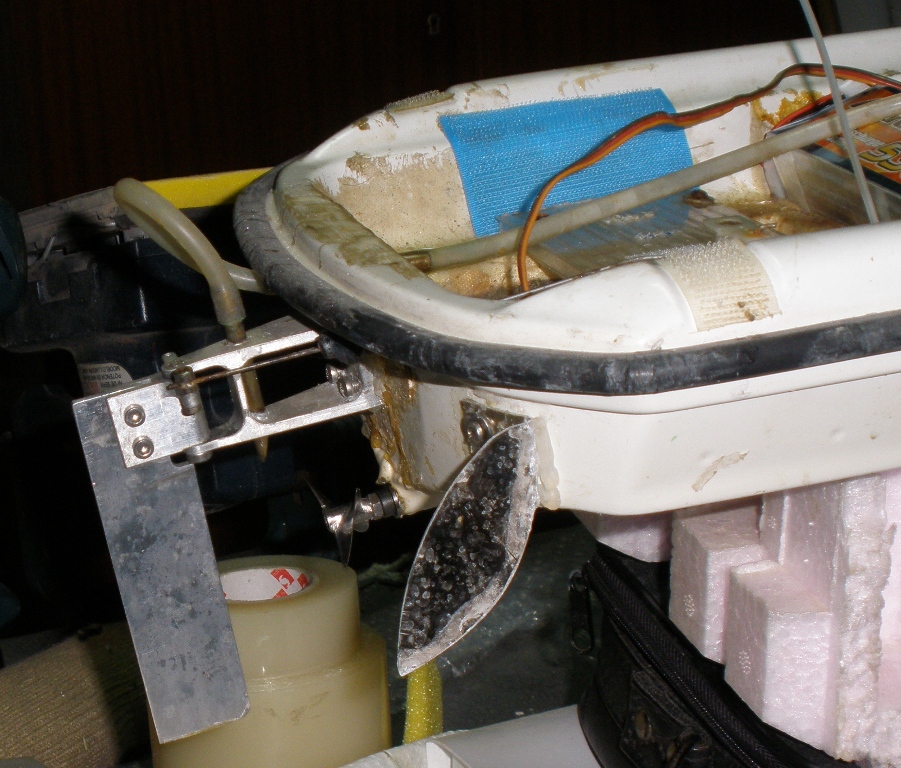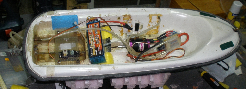 Le he tenido que variar la cogida de las baterias y poner un timon mas grande pues al pesar menos no entraba suficiente en el agua.