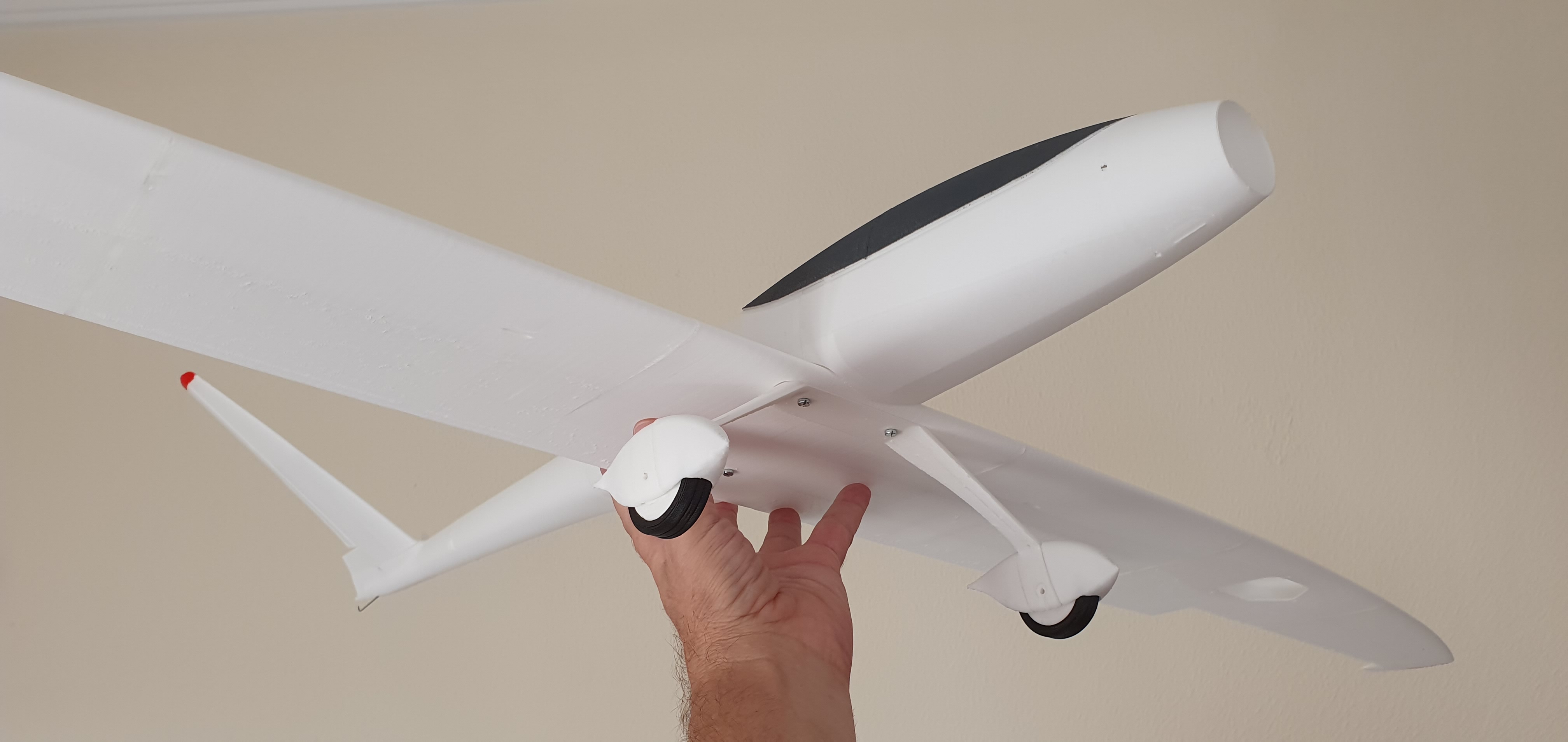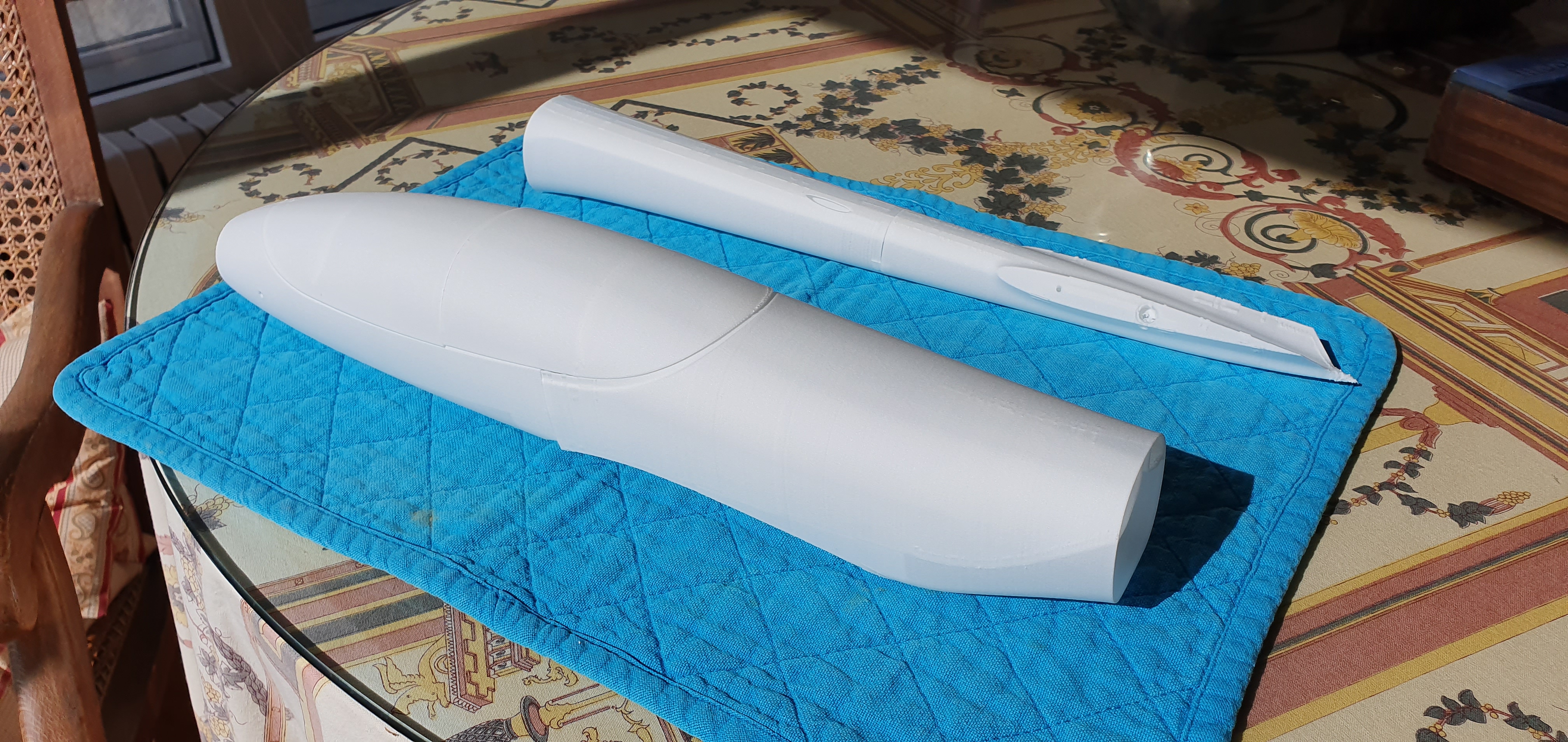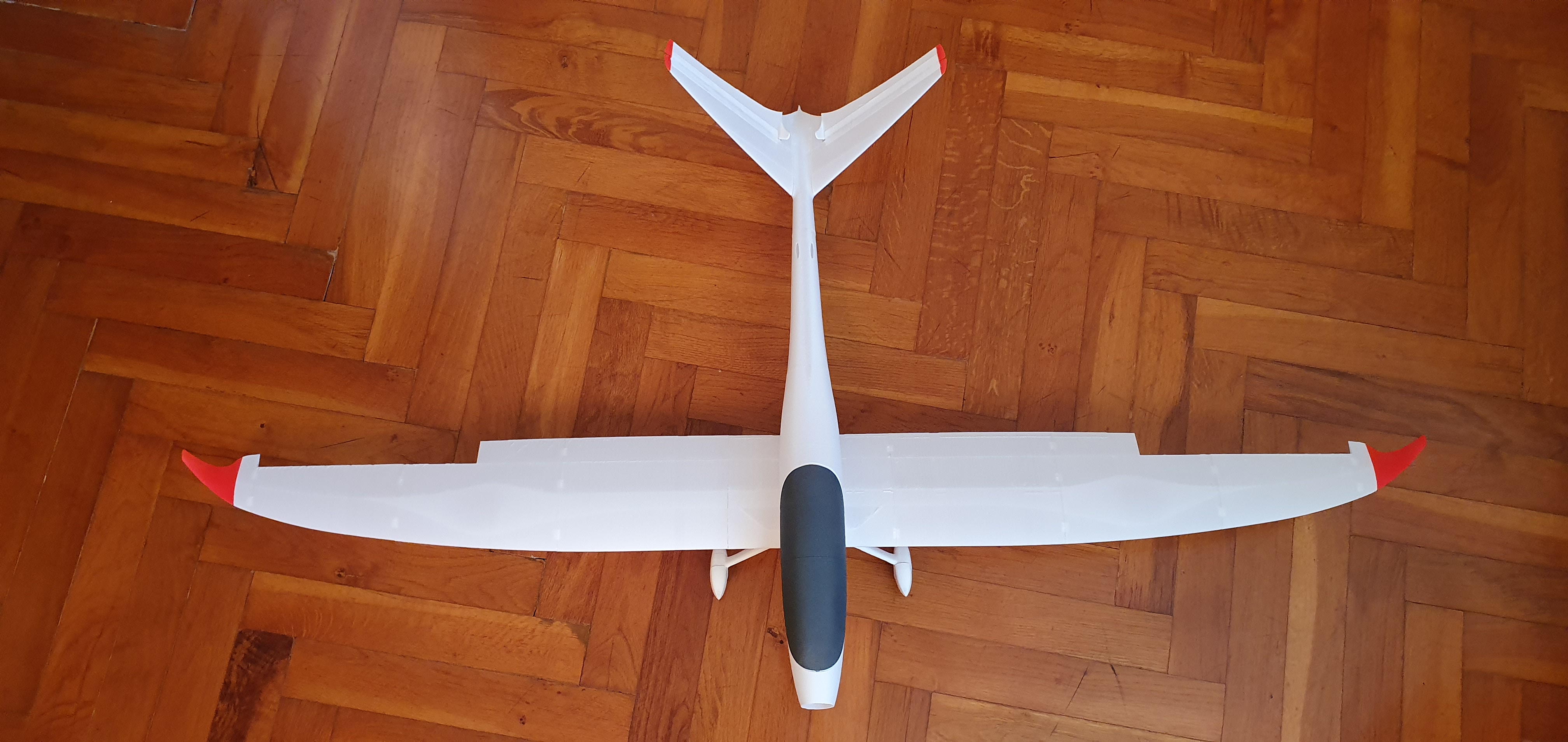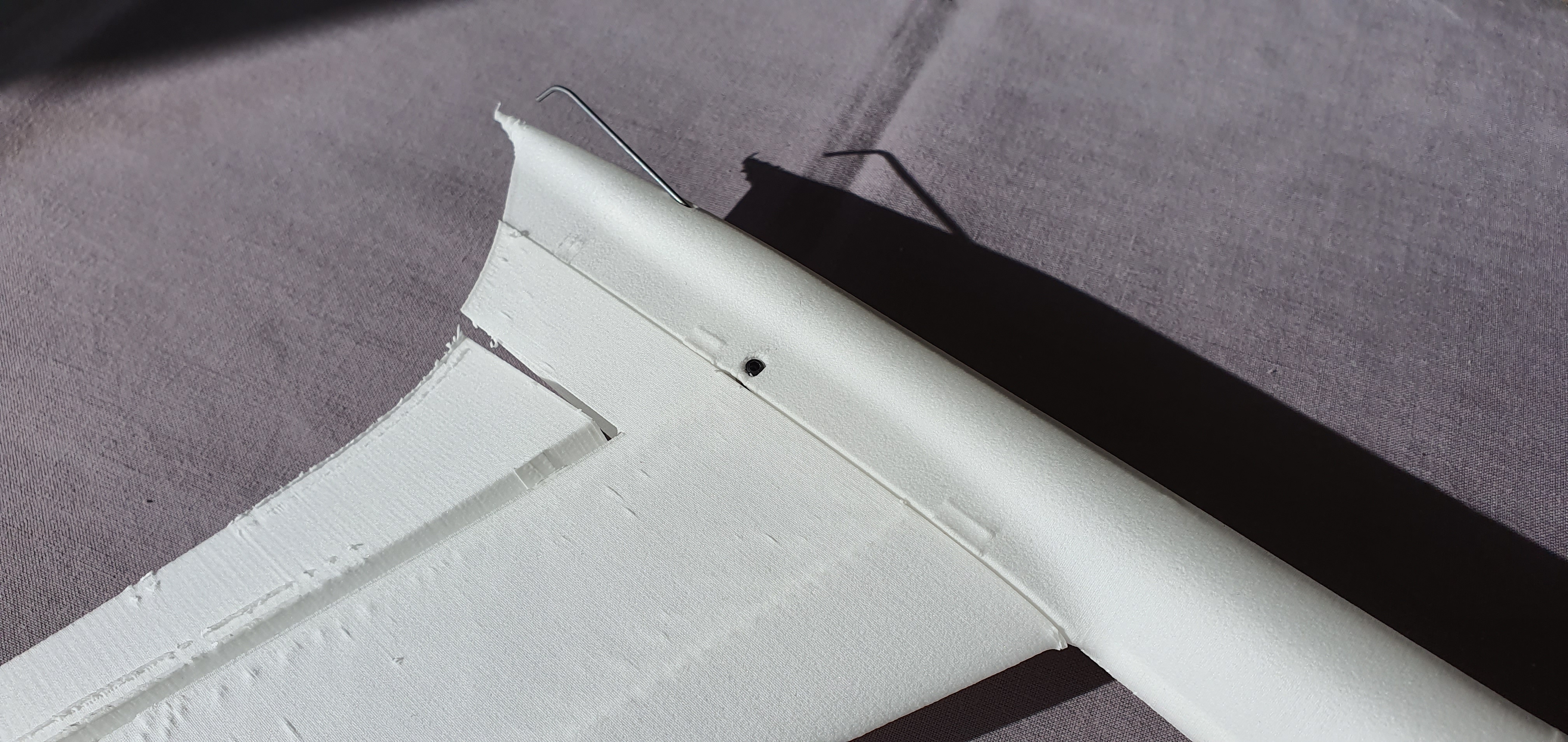 Os dejo un par de imágenes de un nuevo prototipo (se presentará en breve) diseñado específicamente para este material. Una de las secciones del ala para poder apreciar el acabado de la superficie (al tacto es como el antiguo papel de seda de entelar) y el ala completa sin ensamblar aun, llevará un tubo de carbono de 6 mm. como bayoneta. El ala que se ve en la imagen, con una envergadura de 140 cm, pesa sólo 84 gramos.