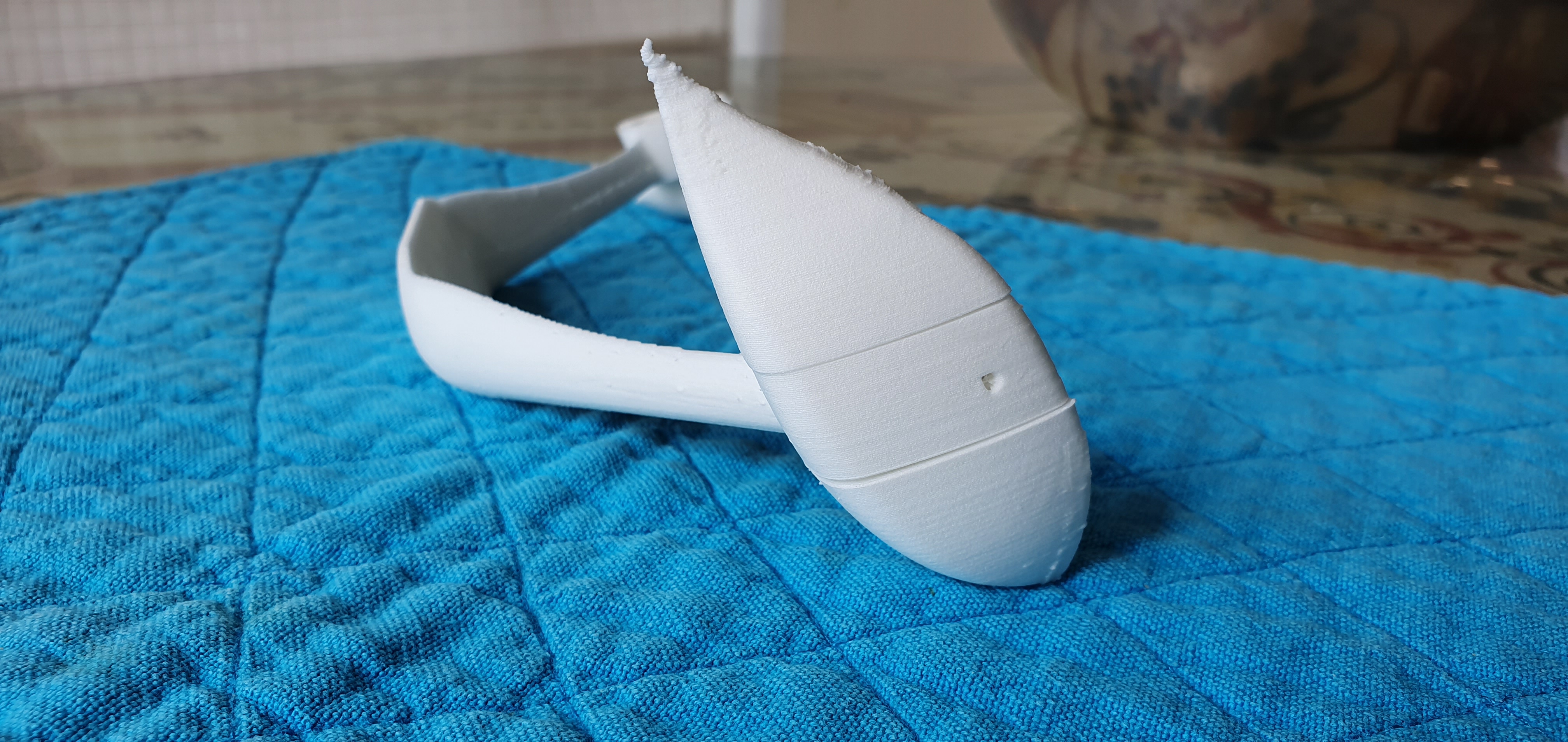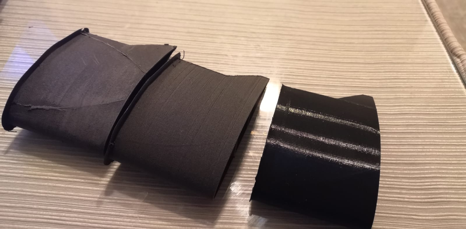 Si rebajo la cantidad de material a la mitad, se debilitará la pieza, no? Pues no. El aumento de temperatura hace que la adhesión entre capas sea enorme, la pieza es más flexible pero mucho más compacta en su estructura. Lo que sí es necesario es adecuar los diseños para este material, con los refuerzos internos adecuados.