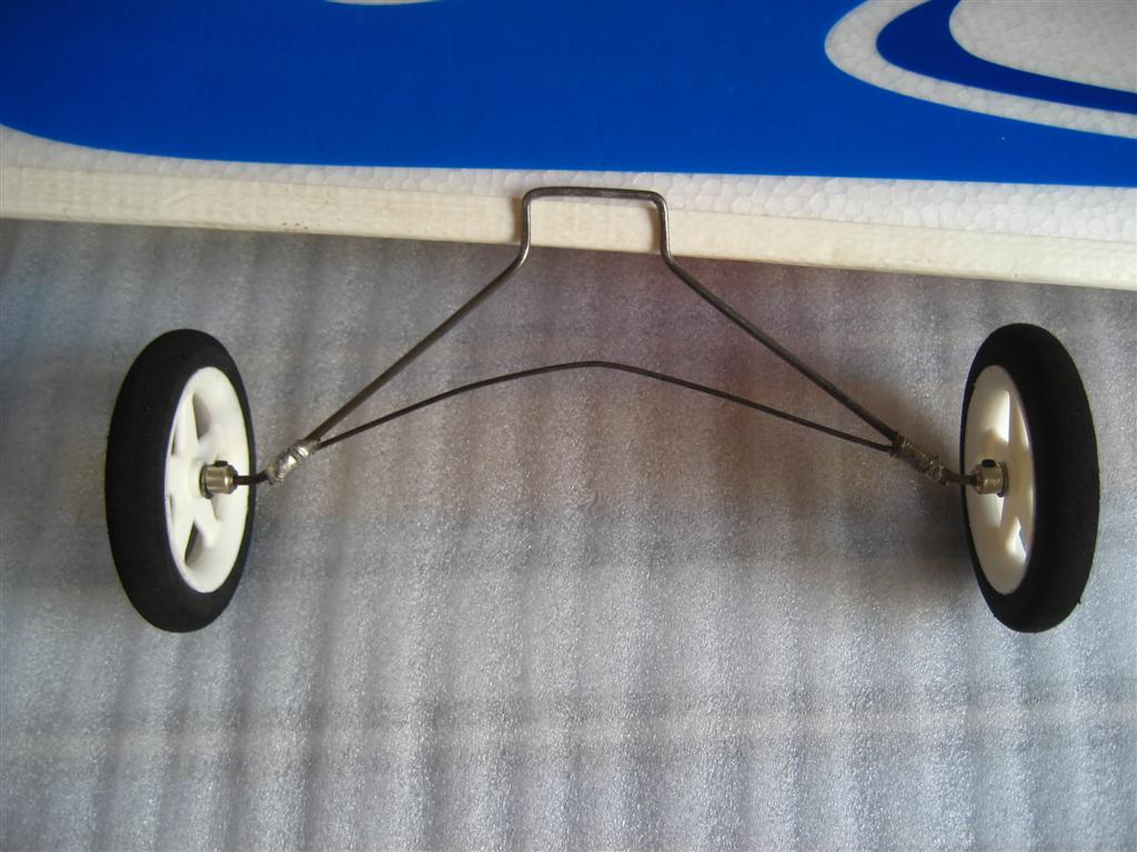 Yo le puse hace unos meses un tren del Haw Sky, que lo modifiqué con una cuerda más fuerte y con un segundo eje entre ruedas , y no veas lo bien que funciona. Si le pego golpe al aterrizar se mueve un poco, pero como entra y sale a presión, no hay problema. Lo vuelvo a meter, y listo. Lo cierto es que desde tengo el tren no se ha vuelto a dar ni un solo golpe al fuselaje, pues se los lleva el tren y no el avión. Y si el terreno es malo, le coloco unas ruedas muy ligeras de 50 mm y despega y aterriza perfectamente.