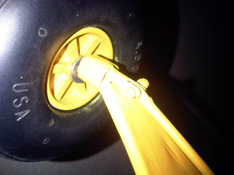 solucion del tren de aterrizaje cuerda de piano de 6mm queda fuerte pero tome la preacucion de soldar unas argollas por si hay que poner unos tirantes para que no flexe, aunque creo que no le hara falta