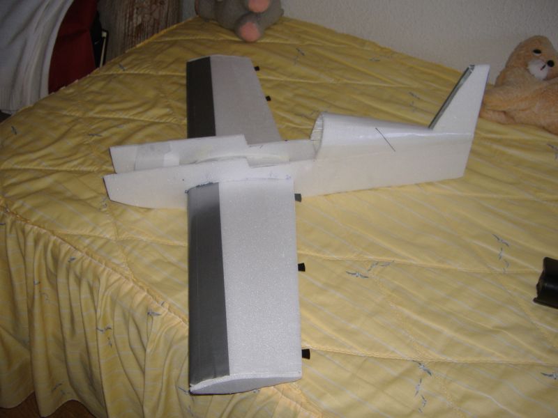 Todo depron, a falta de ponerle la bancada para el Axi y los alerones que se los voy a agrandar respecto del plano original, seran de 6mm, al igual que el timon de cola y el elevador..