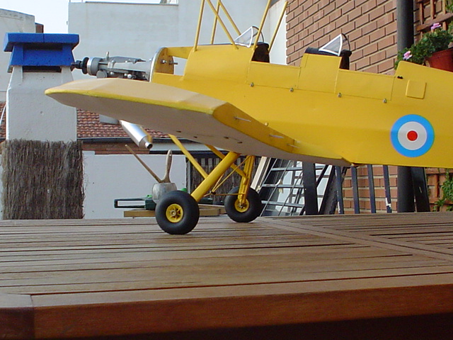 El tren esta fijado entre la carena del motor y el encastre de las alas, yo no se si hacerselo nuevo de varilla de piano del 6 puesto que la que trae es del 4 y encima es del blando no endurecido y despues ponerle dos tirantas desde atras donde estan las dos escuadrillas, de todas maneras yo creo que las ruedas las tiene demasiado atrasadas puesto que a la hora del despegue si lo dejo corretear cuando va cojiendo velocidad tengo que ir tirando un poco de profundidad para que no inque el morro. esto se le corrigio algo cuando le coloque lastre en el patin de cola pero sigue con el problema cuando pilla cualquier chino o palillo.(la pista donde vuelo hay palos, chinos, piedras, espinos y de vez en cuando cabras..... :? ) Bueno unas fotillos del tren.