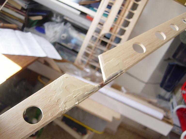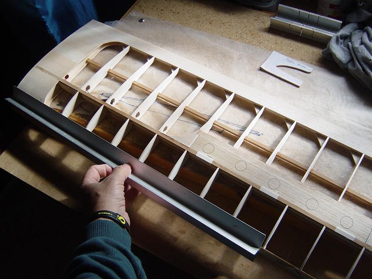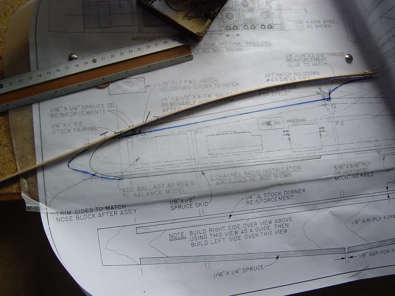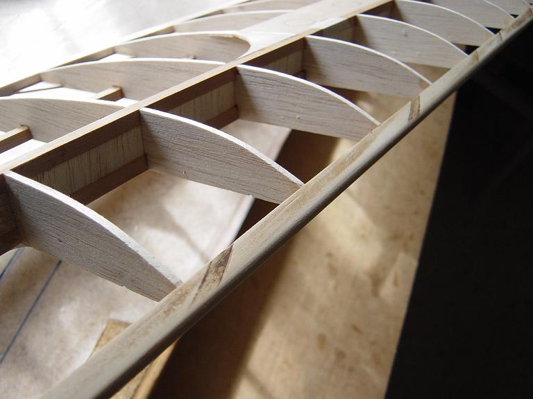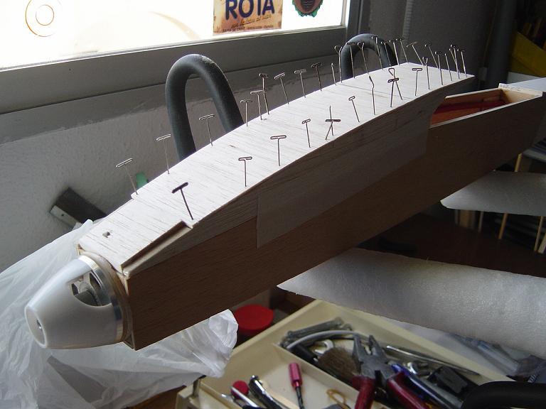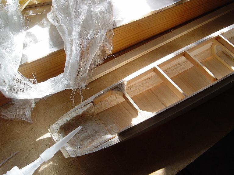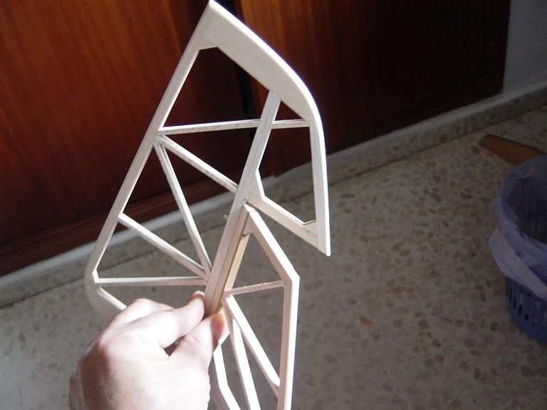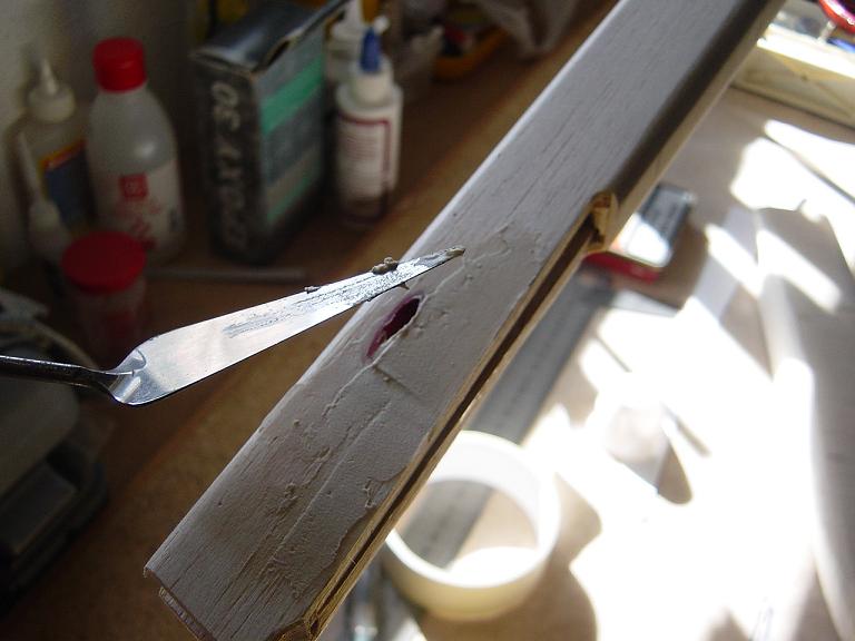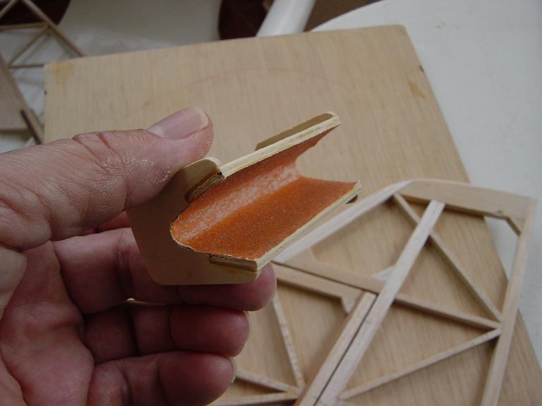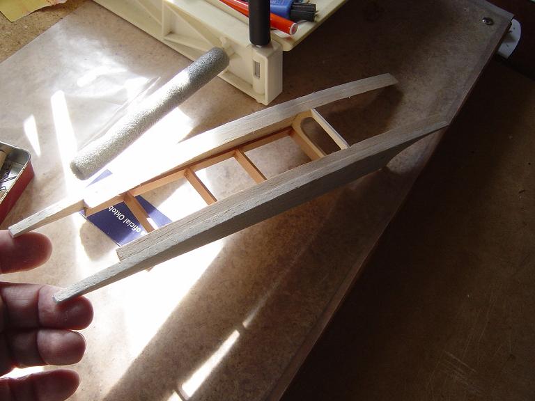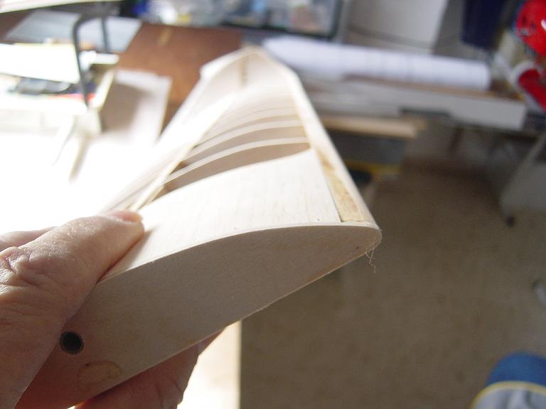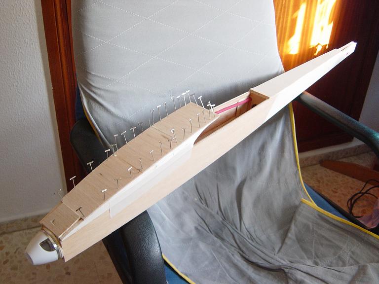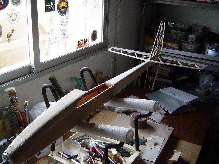 .... y el primer paso en una terminación aceptable al menos empiza por una buena fase de lijado, enmasillado, vuelta a lijar, etc. Este proceso es aún más importante si cabe en terminaciones con plasticos termorretractiles. En este sentido hemos de considerar el film de recubrimiento como la última capa de pintura que le fuesemos a dar al modelo. Esas décimas de milímetro que hay entre la vista y la madera formado por el grosor del termorretractil es lo que cubre el trabajo de la madera; esta una vez recubierta, será practicamente el producto final. Cualquier protuberancia, mal lijado, incluso motas de polvo que queden atrapadas entre la capa del plastico termorretracil y la madera, parecerán luego " montañas " y resaltes indeseables que mermarán el acabado del modelo... y eso sin contar la eficiencia aerodinámica que reviste una mayor importancia en los veleros.