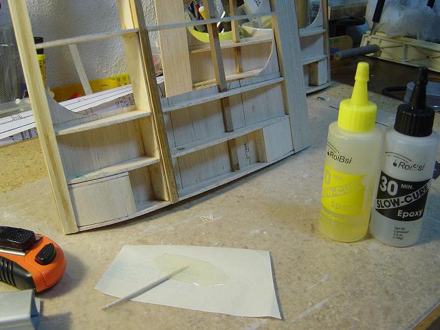 Las hemos dejado de momento y hemos continuado con el fuselaje. Como recordareis ya habíamos construído los laterales, así que ahora nos toca unir el fondo del mismo a fín de seguir la secuencia de montaje recomendada por el Maestro Renaud que nos garantiza un fuselaje recto y sin reviraduras... :P :P :P :P