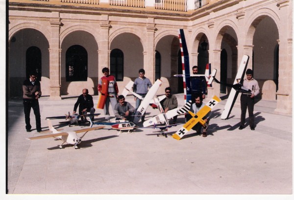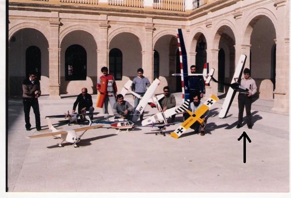 8) Hola amigos, buenas noches. Epitath, Juan, os comento..., el energúmeno que sujeta el velero del que tienes interés, Juan, se trata de un servidor y el velero es un Dino de Modelhob. Esta fotografía fué tomada en los inicios de los ochenta durante una exhibición que realizaron los amigos del Club del Muro del Puerto de Santa María y nos invitaron a participar. La foto fué tomada creo que en el patio del Colegio de La Salle y entre los amigos distingo a Paco Pino; mi compadre, con su estilizado Mirage; ( te suena ...? ) junto a mí, Juan Cordero con un ala baja, Antonio Blas con un ala volante de un servidor que se llamaba Nana y la hice de un planito de la revista RC Model y la modifiqué un poquillo a mi estilo adaptando una cabina transparente del Llanero... :wink: :wink: :wink: .No recuerdo a los otros aeromodelistas, salvo al del heli, que sí Epitah, es un verdadero aficionado del " lado oscuro " y de los buenos, buenos de verdad y un pionero, que es el amigo Miguel-Angel de San Fernando.