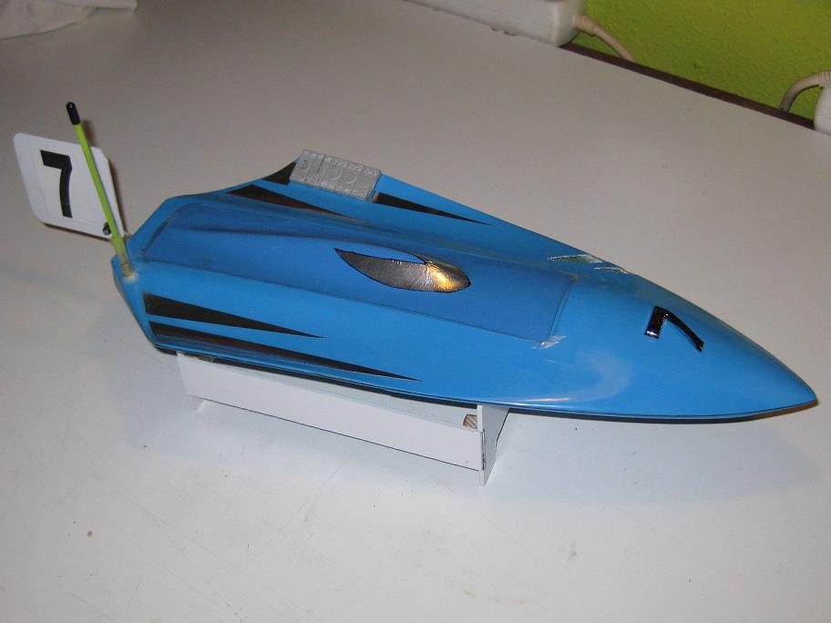 Pusisteis canales de inundación a vuestras lanchas y yo para ir delante de vosotros monté en mi lancha un motor de 4400Kv. Era demasiado motor para una mini-eco, que sería ingobernable, de eso no cave la menor duda, o al menos eso me deciais to2, y yo os dije que lo dificil sería domar a la bestia y así lo hice. Fué cuando le puse el flap y aquello marco de nuevo la diferencia.