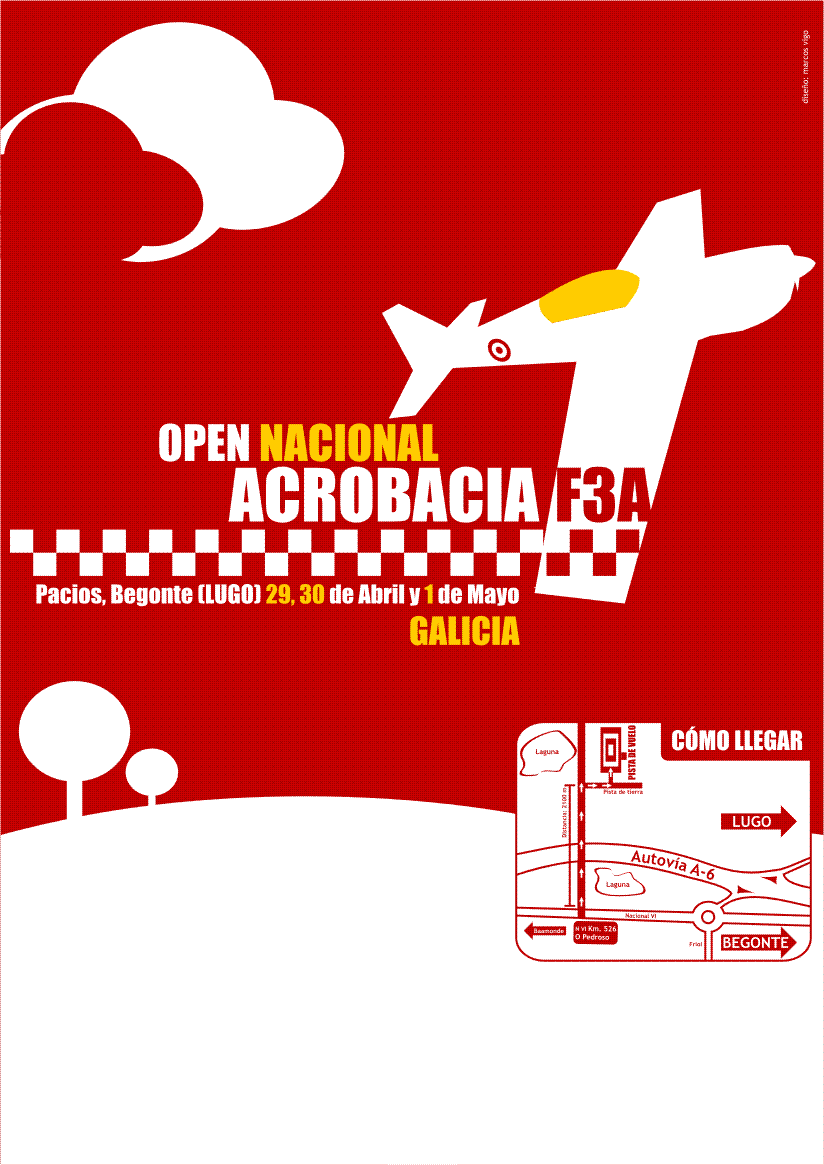 Venga amigos animaros, donde estais toda la peña de acrobacia, o es que no hay ganas de volar. Vamos a montadar pra todos vosotros una gran fiesta aqui en Begonte, porque a parte de volar en nuestra estupenda pista asfaltada de 225 metros de largo por 20 de ancho, os vamos a invitar a probar el pulpo gallego, el lacón, el orujo asi como a que disfruteis de nuestro entorno y de los encantos de Lugo.