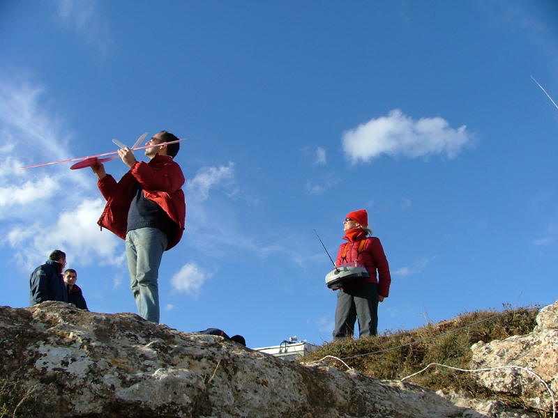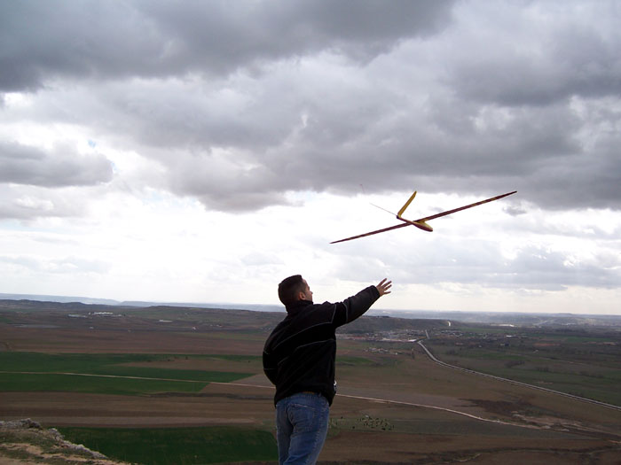 Miguel Medina lanzando el Vector, diseñado y construido por el mismo, y pilotado por su hijo Jorge, una autentica figura.