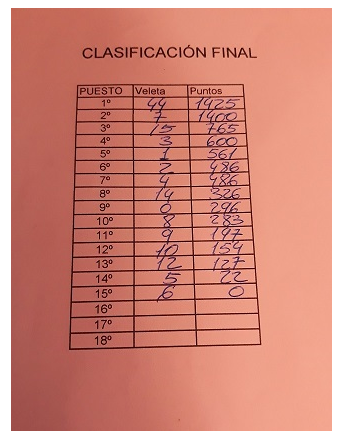Os pongo el resultado de la jornada junto con la suma total de puntos de la clasificación general.