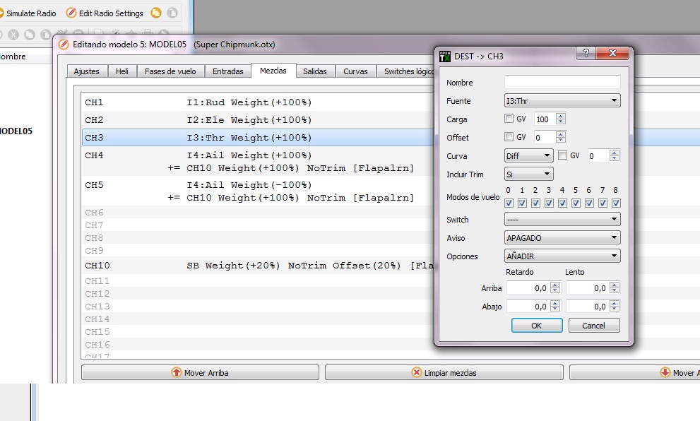 Dependiendo del receptor que lleves y del tipo de vuelo que hagas tendrás que colocar tus antenas de una forma u otra. Para maximizar el alcance deberías tener las antenas del TX y RX paralelas de forma que los dos lados del donut se toquen. Si vas a hacer, por ejemplo, vuelo 3D a lo loco pero cerca, puede interesarte más poner las antenas a 90º, de forma que sea poco probable que en un momento dado te coincidan alineados los dos huecos durante las maniobras. Si vuelas veleros muy alto sobre ti, es muy probable que si tienes las dos antenas (TX y RX) en vertical, la recepción sea pobre, con lo que también sería conveniente tener una horizontal y la otra vertical.