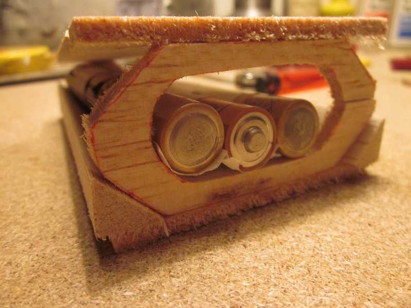 8) Hola Alfredo buenas noches, aquí te muestro la resolución de como tendré que hacer el pack de baterías 5 elementos formato AA 2200 mAh 6.V - NIMH, para que así puedan entrar entre F-1 Y F-2 , PARA MOSTRARTE ESTO e echo en balsa un pequeño kit solo del espacio entre estas dos cuadernas para que así puedas observarlo mejor, las baterías que muestro solo son a modo de ejemplo no son las que llevara definitivamente, y si te das cuenta aun queda en los lados de los elemento algo de espacio, del cual aun se podría aprovechar en caso de lastre necesario, por lo demás solo esperar a resolver el tema hartamente hablado del casquillo y bayoneta, que creo nos va a dar bastante guerra, esperemos no tengamos que ponernos en manos de un tornero, un fuerte abrazo amigo…. Ya me cuentas