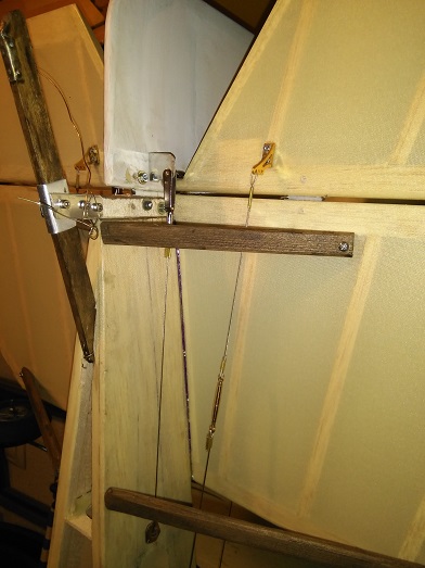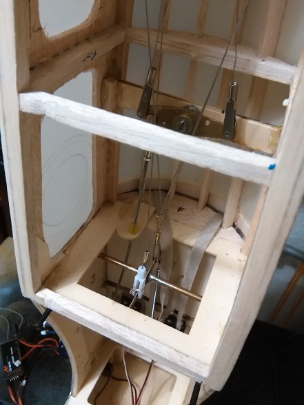 Ademas , según le daba se me empezó a ir un poco la pelota y empece a maquetearlo e improvisar soluciones que no venían en el kit, como el mando push pull de profundidad o dirección, el fuselaje lo aligere en los laterales pues venia en forma de cajón , como para hacerlo en celosía había que empezar de nuevo simplemente le hice unas perforaciones .