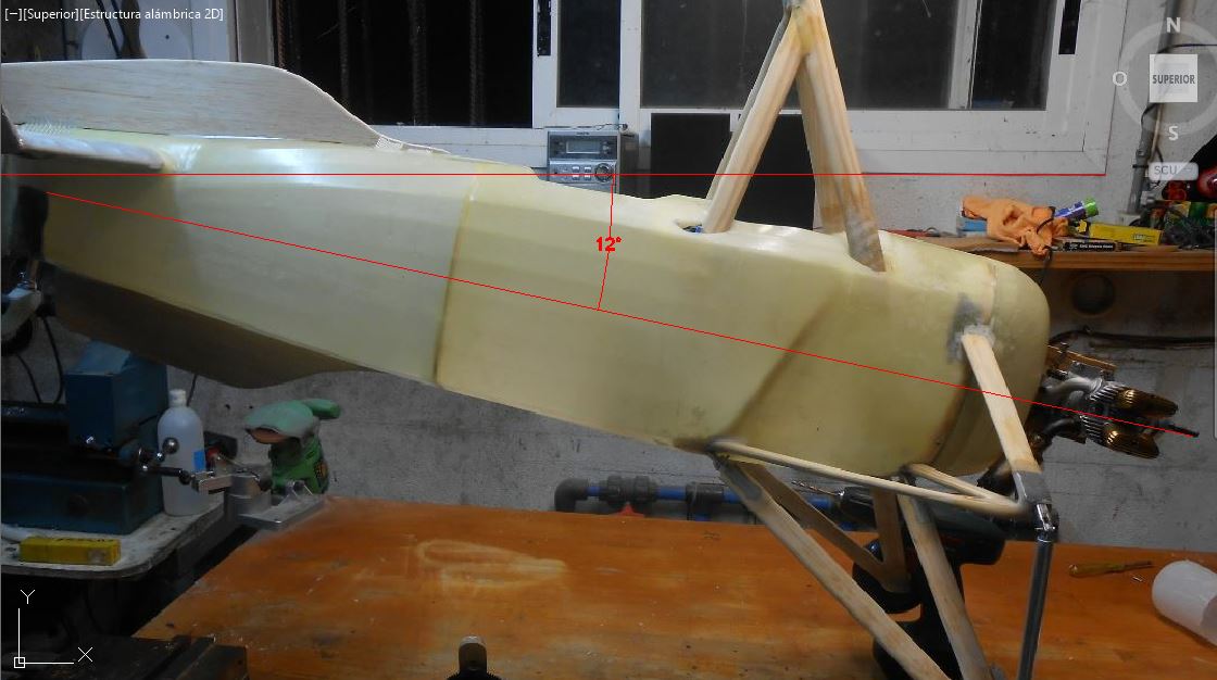 Gracias Migueleme por las opciones que me has facilitado. Como dices tenía que haber hecho eco de Domingo a la hora de colocar la torre. Al final estudiando todas las opciones y he tenido que descartar la de incrementar el peso del morro, ya que para conseguir el picado que necesito tenía que instalar otro motor más pesado o plomo del orden de 2,5 kg, es decir 1,6 kg adicionales al peso del motor que ronda los 900 gramos. Esto sería excesivo, ya que el modelo en orden de vuelo calculo que va a oscilar en torno a 4 kg que no es lo mismo que 5,5 kg. Por otra parte no he tenido otra opción que cortar la torre a ras del fuselaje y con una fresadora neumática ir devastando el alojamiento del mástil hasta dejar de nuevo libre el compartimento donde vuelvo a instalar de nuevo la torre. En este caso tengo que sacrificar ligeramente la inclinación y posición del conjunto torre y rotor con respecto al c-30 original, pero se aprecia muy poco este cambio una vez realizado. Me ha dado un poco el tostón y he tenido también que empalmar la torre y reforzarla con fibra de vidrio ya que esta había quedado corta.