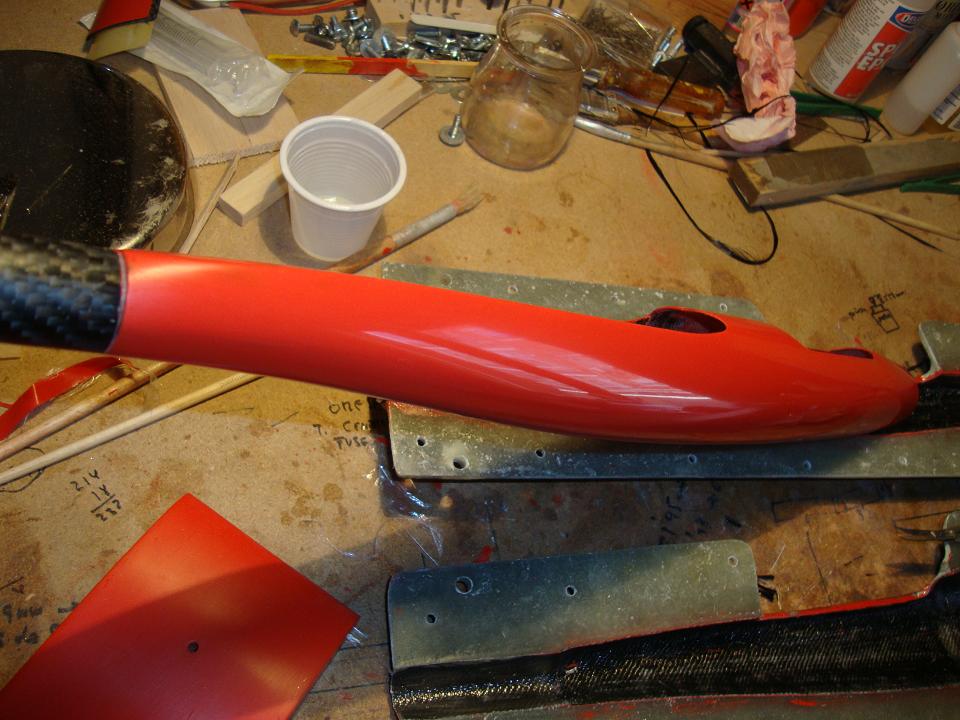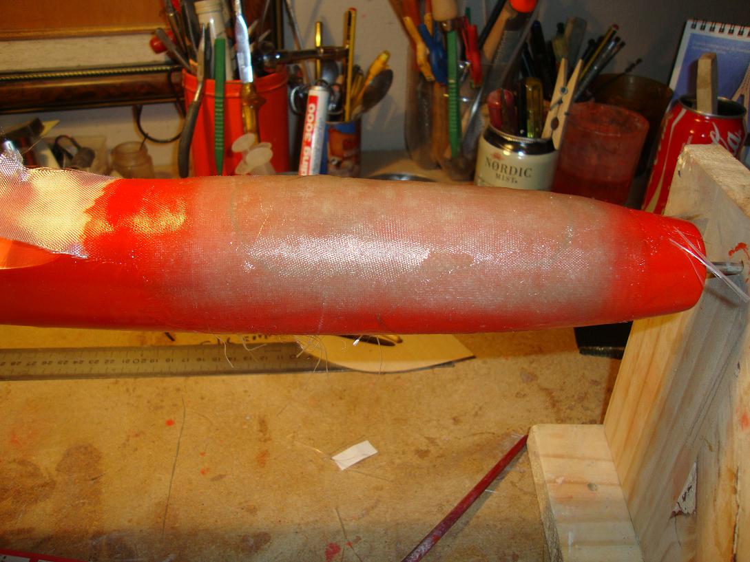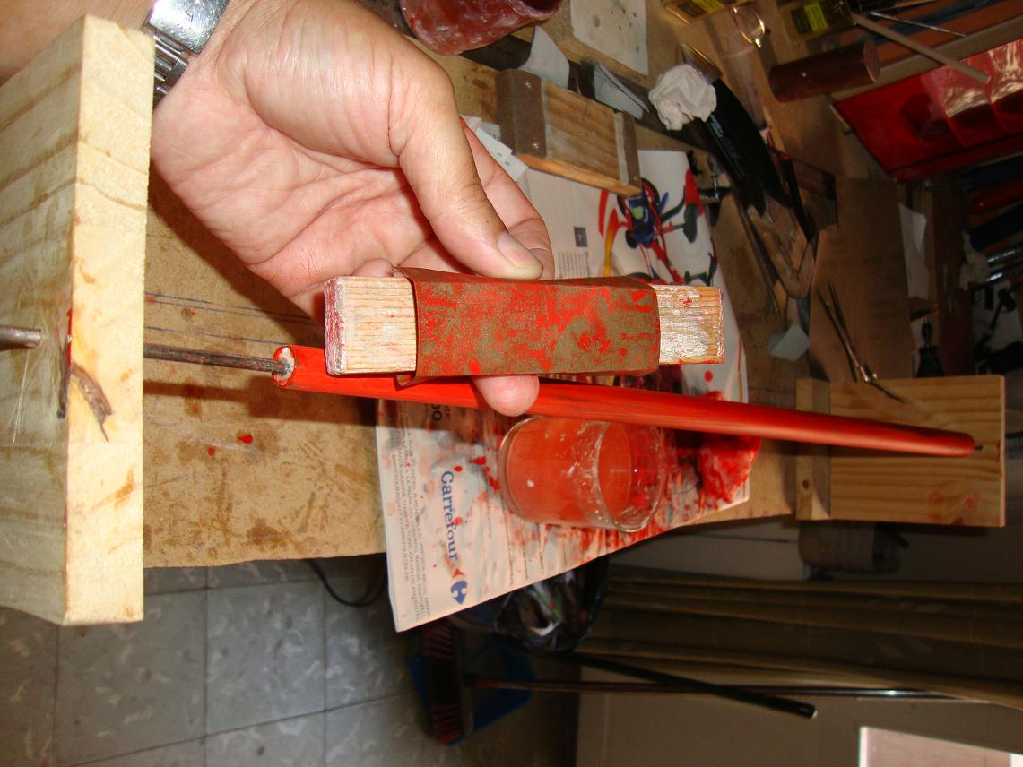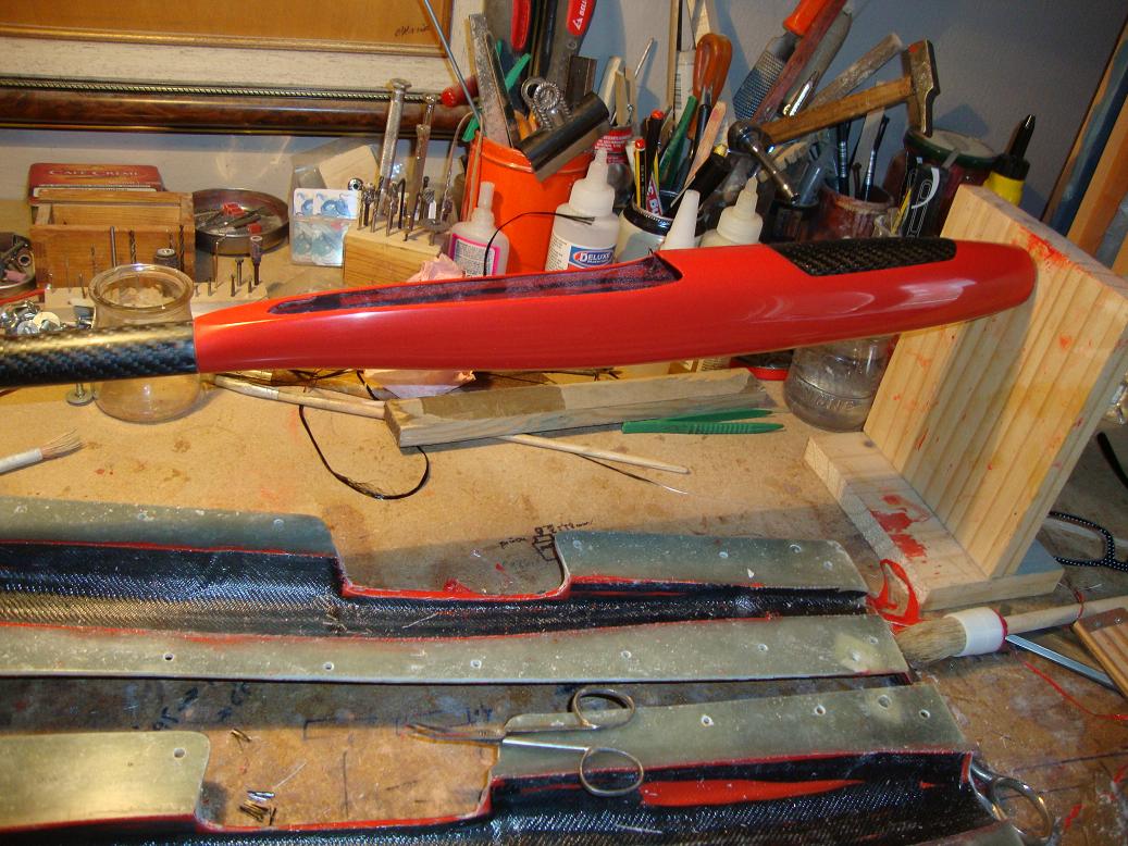 Hemos hecho, o mejor dicho: intentado hacer, 3 fuselajes, dos de ellos son de tubo en carbono de caña de pescar y parte delantera a molde perdido, y otros dos de tubo de carbono y ojiva anterior con molde en epoxy. Uno está volando, el de dos canales, y lo hace honrosamente. Los dos siguientes serán mejores. ehin?