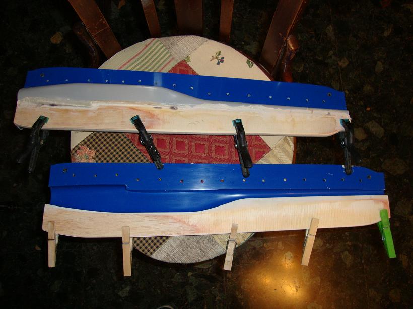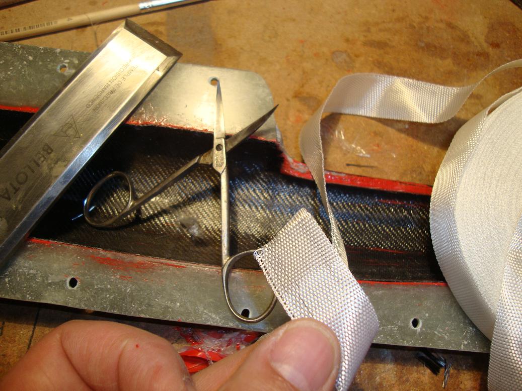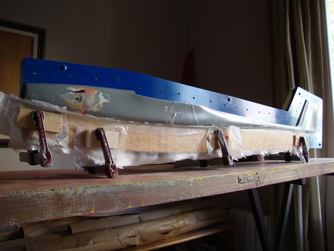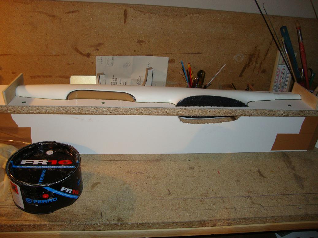 Una vez hecha la herramienta, no tenemos más que ponerla en posición y fabricarnos una pestaña tan ricamente. al otro día retiramos la herramienta, recortamos a nuestro gusto la pestaña, lijamos un pelin, damos epoxy y una capita de microbalones con epoxy y a cerrar el molde sin más.