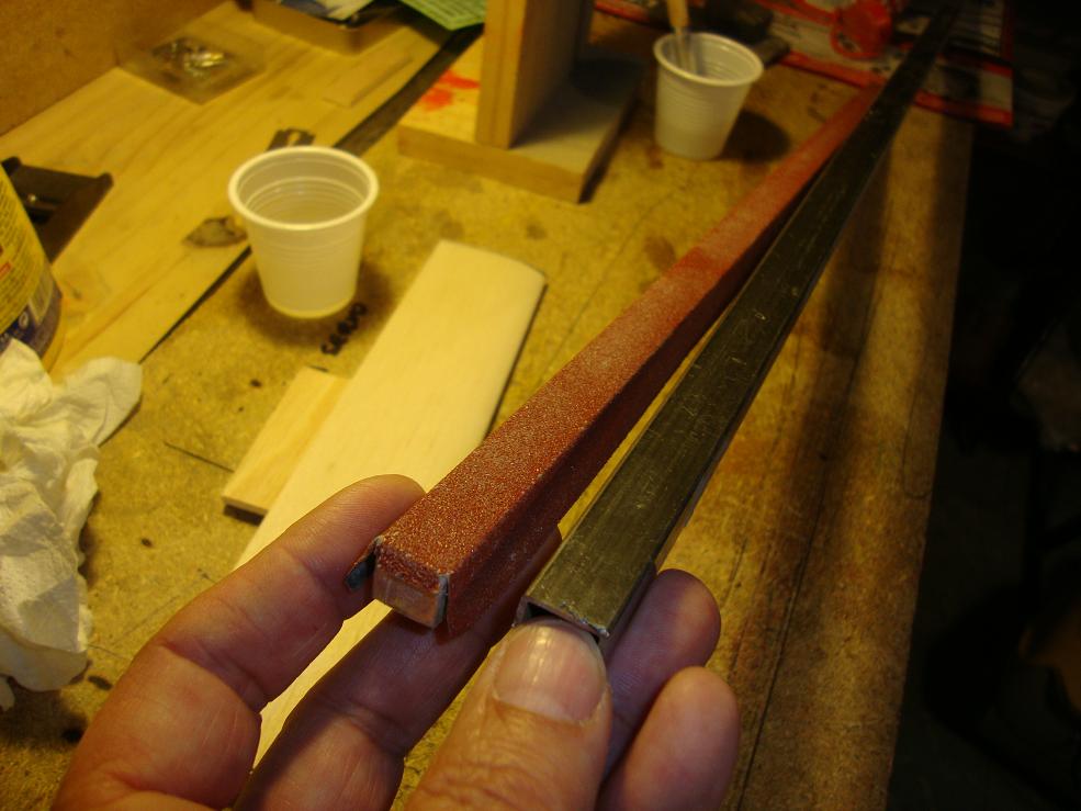 La herramienta fundamental para hacer estas piezas, es una barra de aluminio de sección cuadrada con una lija pegada con cola de contacto, un perfil de hierro también servirá, sea cual sea el que elijamos debe ser un poco más largo que la pieza que queremos lijar.