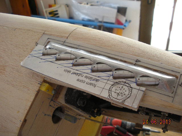 Muchas gracias Manolo, la verdad es que lo estoy disfrutando. Ahora estoy con la colocación de las bisagras Robart para los flaps que tienen la dificultad de estar redondeados de forma cónica con lo cual el eje de giro tiene que estar en una posición muy concreta. Estas bisagras parecen fácil de poner pero siempre queda duda si quedarán bien alineadas para que luego vayan suaves. He probado a ponerlas en un perfil en "L" hecho de balsa y cosidas con alambre de cobre, aunque en el segundo intento las he fijado con un poco de cinta americana, una vez colocodas las he puesto en su sitio y el resultado es estupendo. El secreto está en hacer los agujeros algo mas grandes para que entren suaves y rellenar el hueco con una masilla de epoxi con microburbujas, tambien en el interior del ala he puesto unos tacos de porespan porque es la mejor forma de sujetar estas bisagras. Van las foticos.