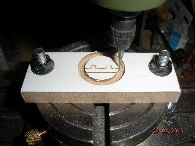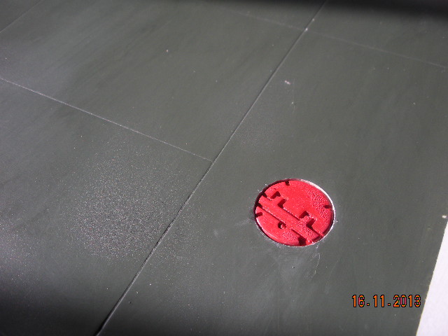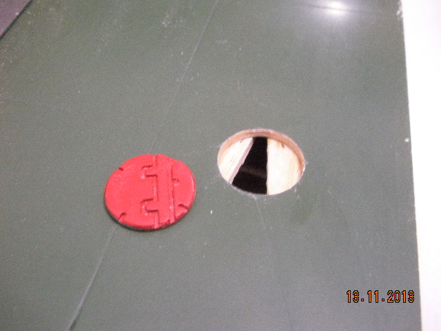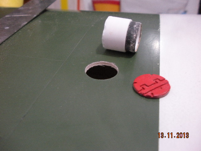 Para hacer los tres tapones de los depósitos de combustible he hecho un original con la fresadora y luego un molde con silicona blanca Ceys. Cada pieza está hecha con epoxi. Están colocados despues de pintar, para redondear el hueco he puesto lija en un tapón con el diametro adecuado.